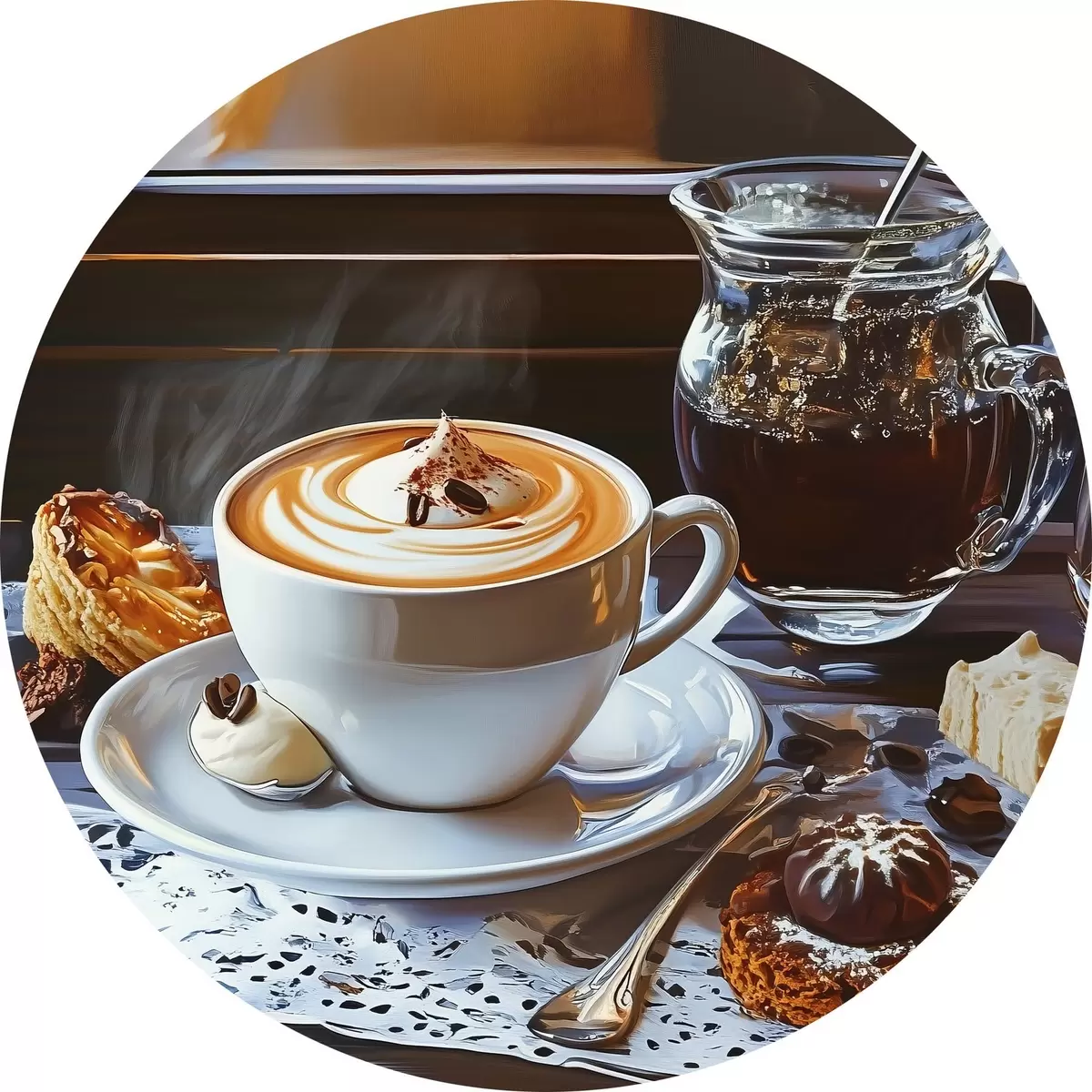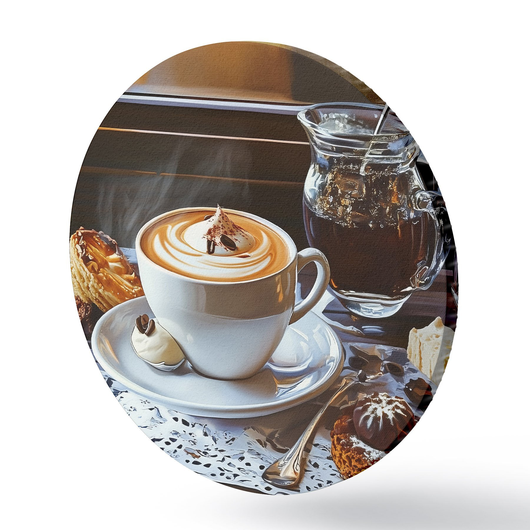 Apaļas gleznas Kafija uz galda r44229