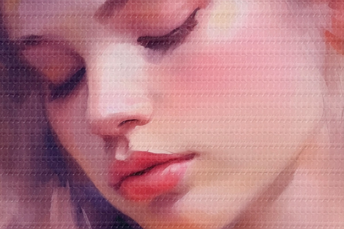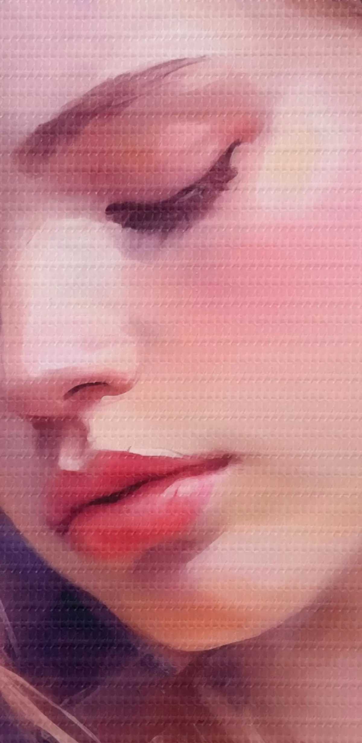 Smalkais diegu pinums uz šī audekla atgādina profesionālu mākslinieku audeklu virsmu.