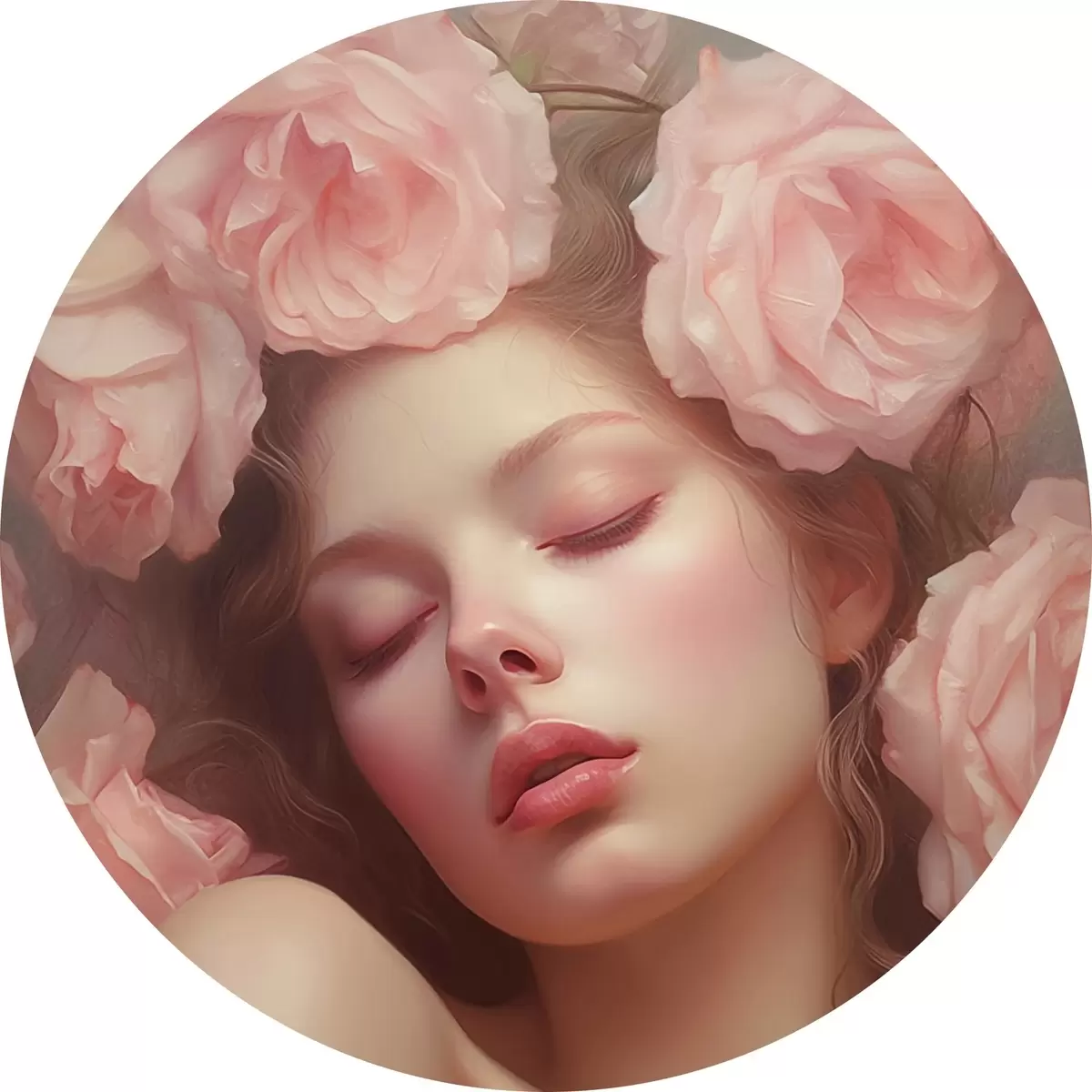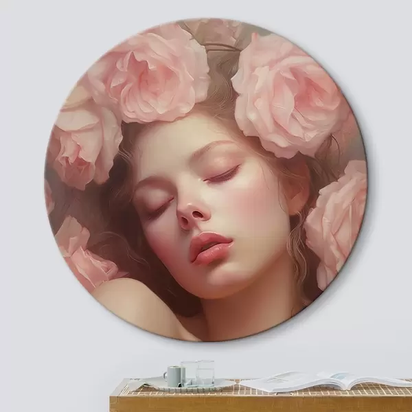 Apaļas gleznas Meitene ziedos r44270
