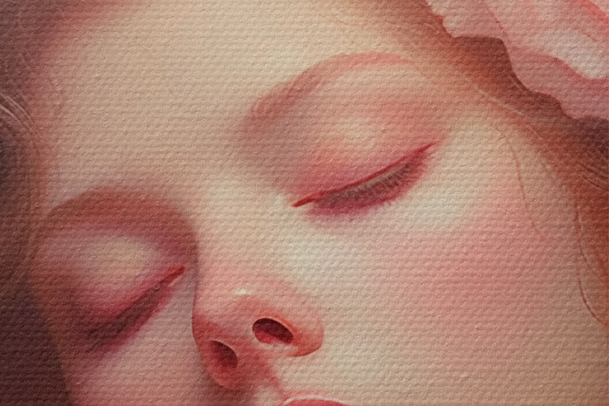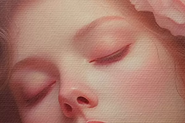 Smalkais diegu pinums uz šī audekla atgādina profesionālu mākslinieku audeklu virsmu.
