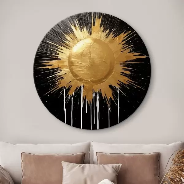Apaļas gleznas Abstraktā dzeltenā saule r44281