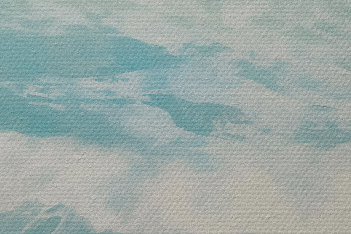 Smalkais diegu pinums uz šī audekla atgādina profesionālu mākslinieku audeklu virsmu.
