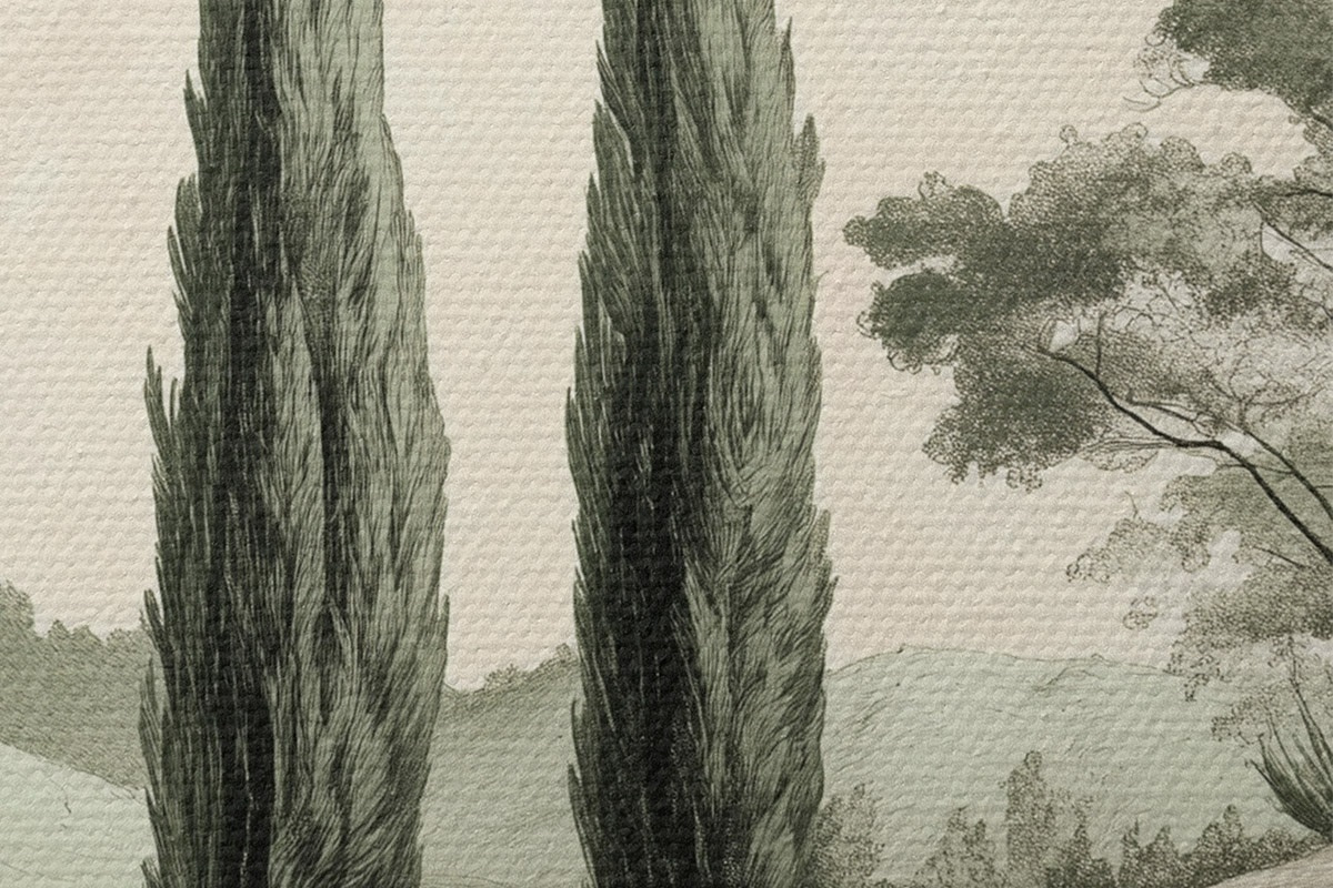 Attēls Toskānas ainavas, pasteļtoņi, cipreses, klintis, lauku stils Nr r44307