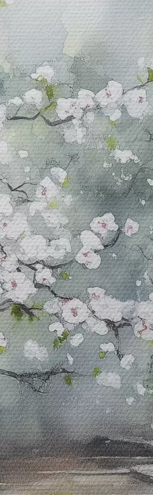 Attēls Japānas dārzs ar ķiršu koku un māju, austrumu, akvareļu stilā Nr r44309