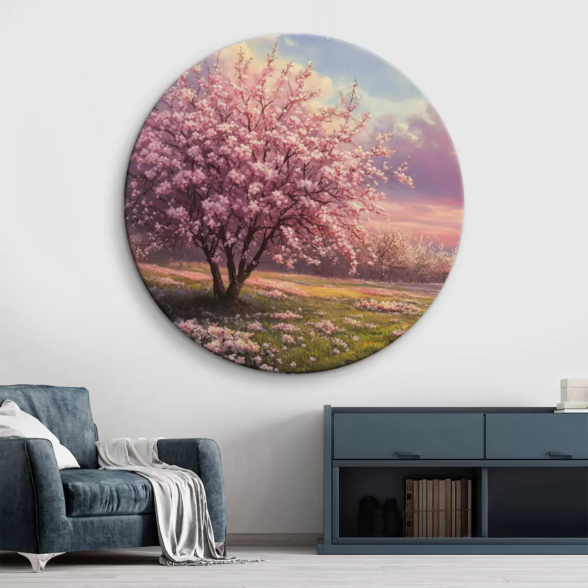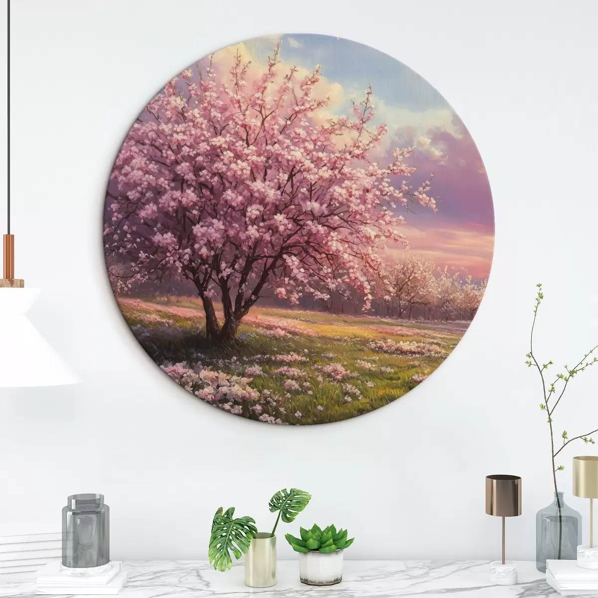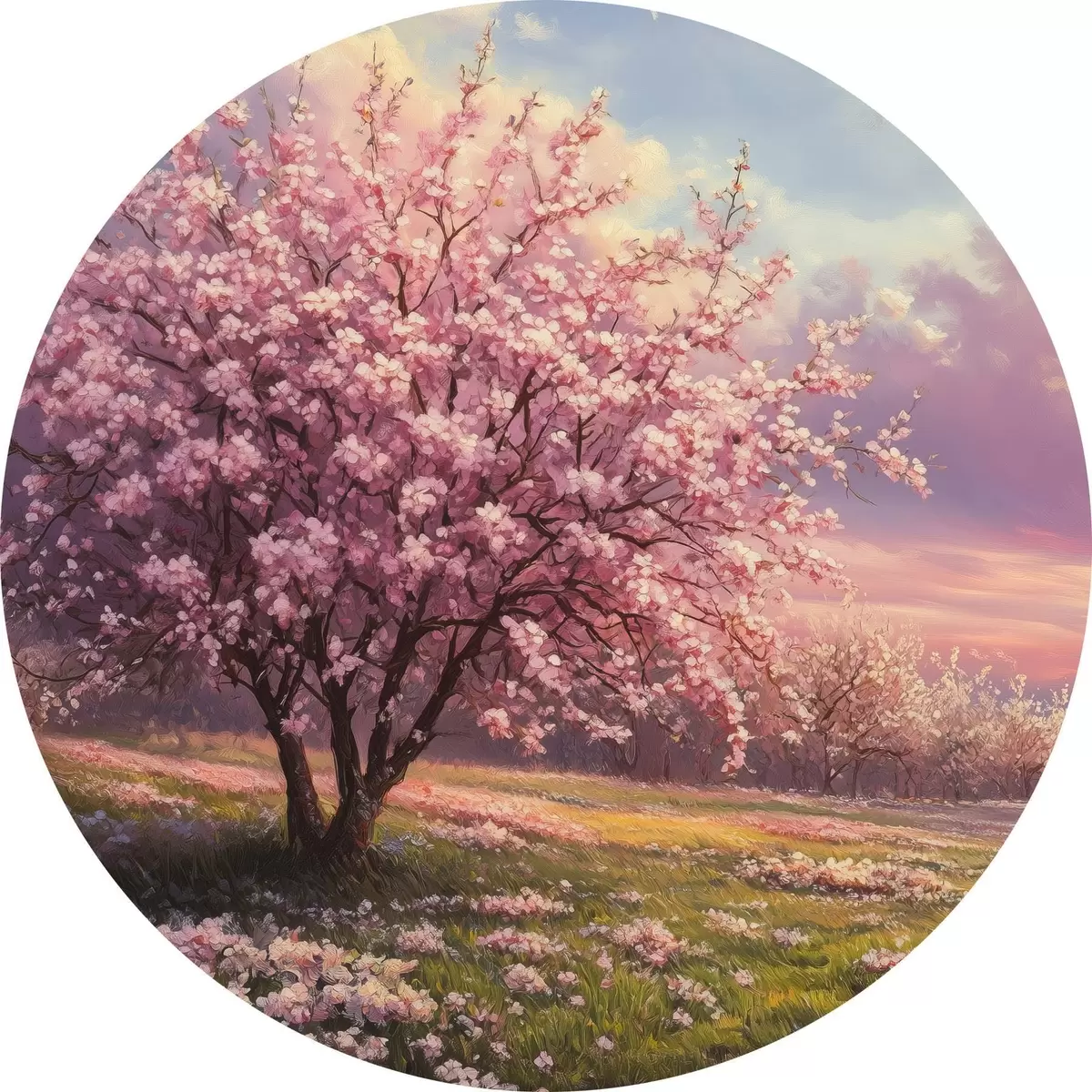 Apaļas gleznas Ziedoši rozā koki r44324