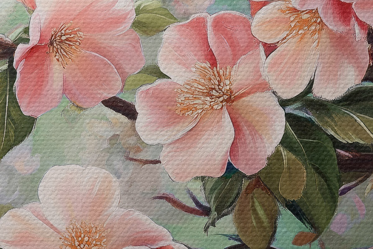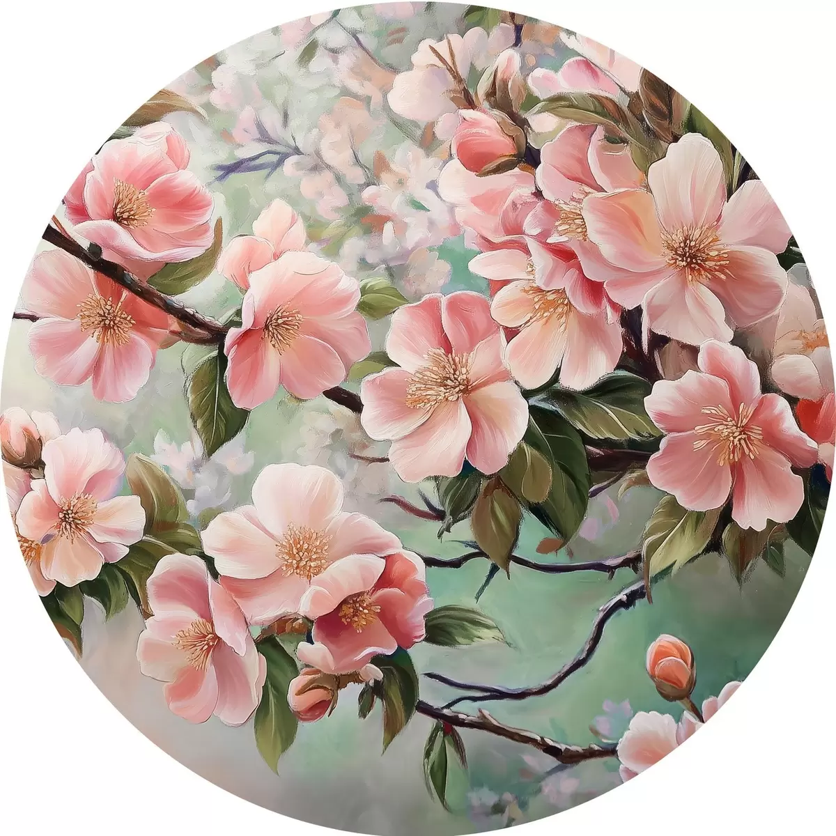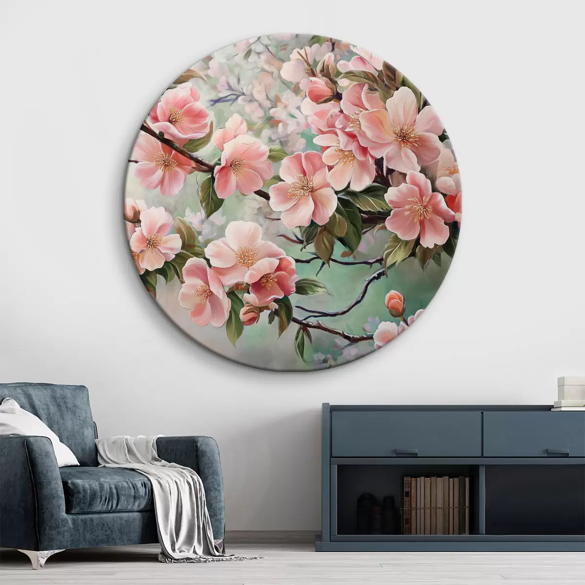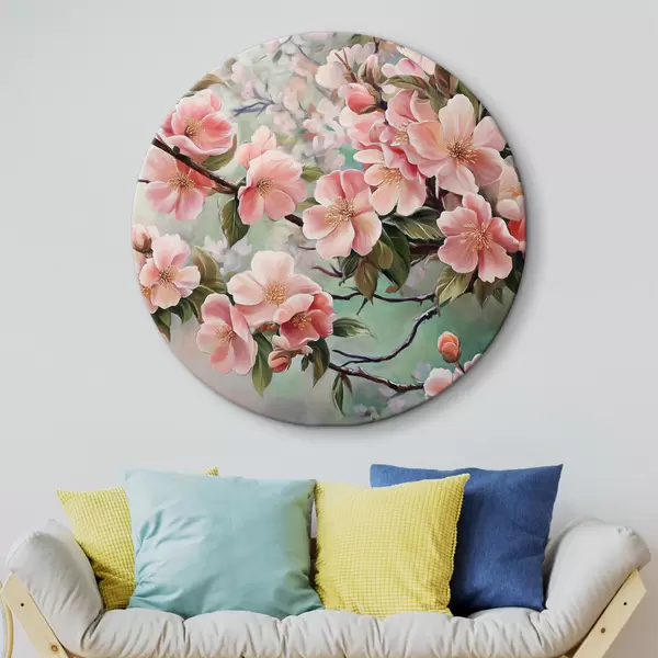 Apaļas gleznas Ziedoši rozā koku zari r44327