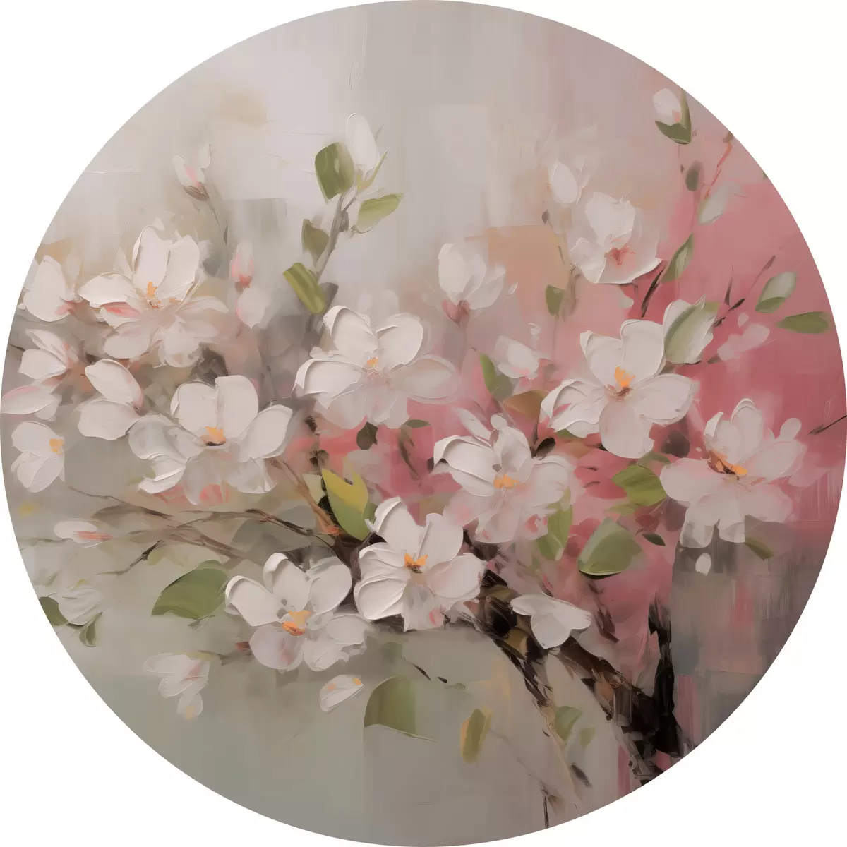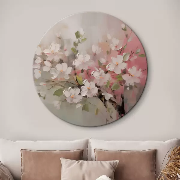Apaļas gleznas Abstrakts zars ar mīkstiem ziediem r44366