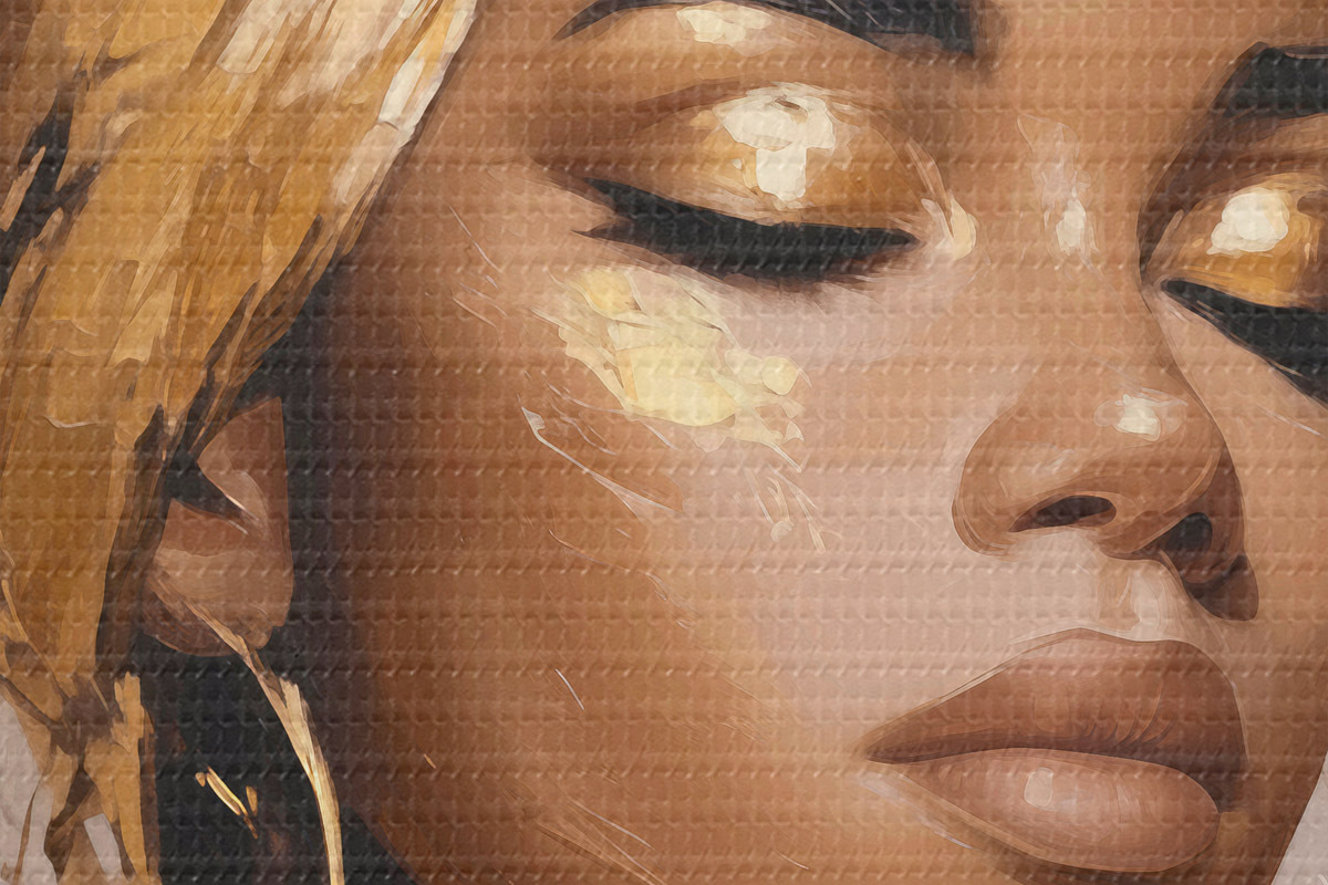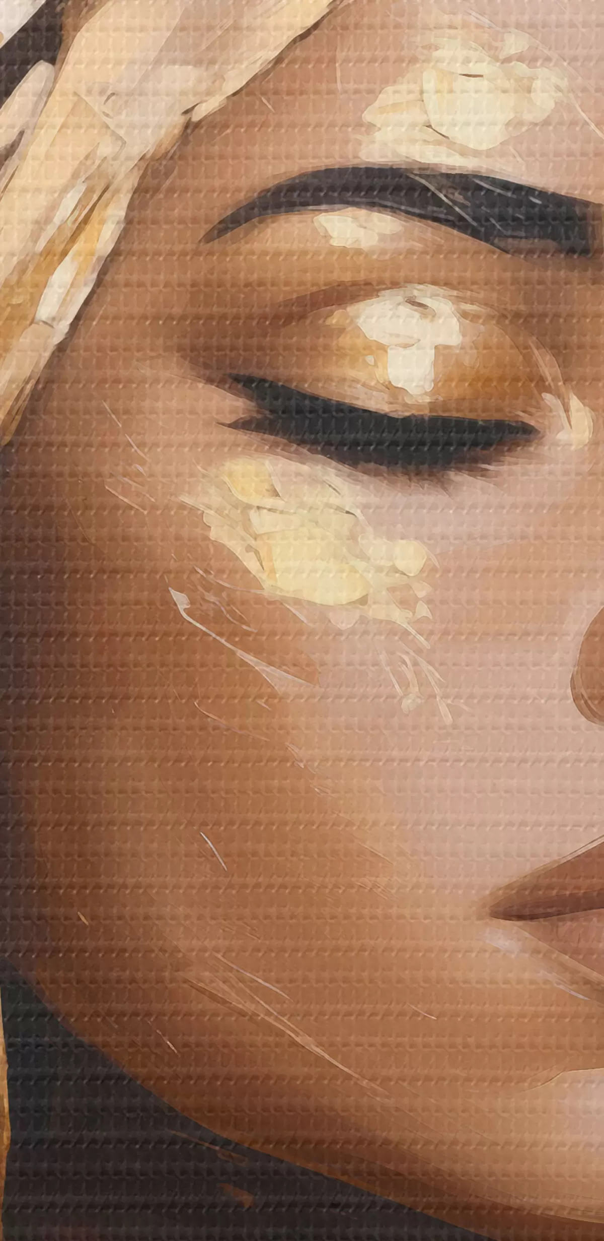Smalkais diegu pinums uz šī audekla atgādina profesionālu mākslinieku audeklu virsmu.