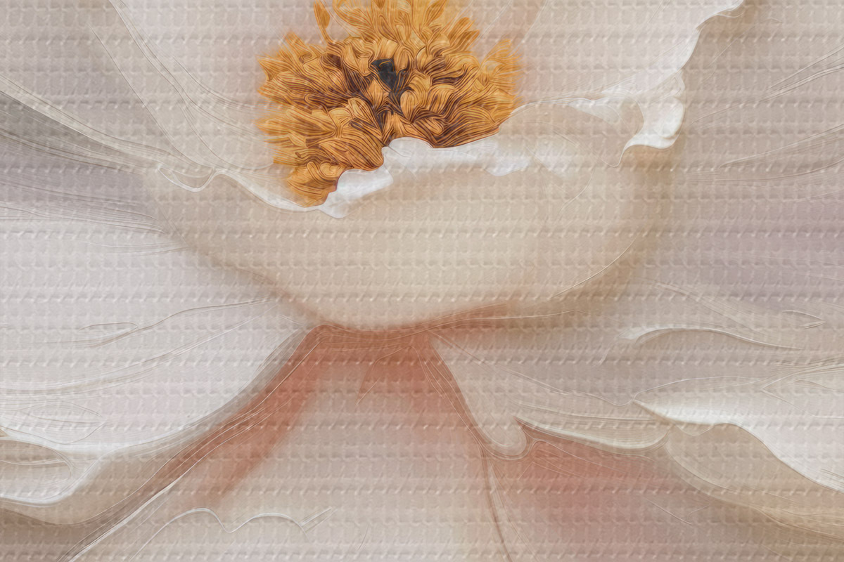 Smalkais diegu pinums uz šī audekla atgādina profesionālu mākslinieku audeklu virsmu.