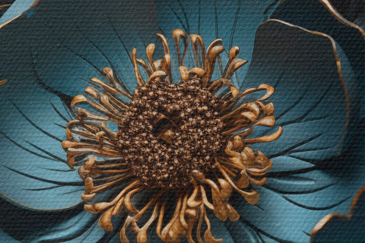 Smalkais diegu pinums uz šī audekla atgādina profesionālu mākslinieku audeklu virsmu.