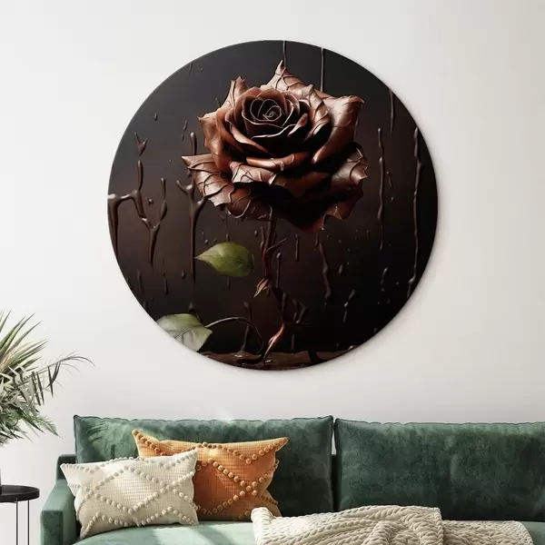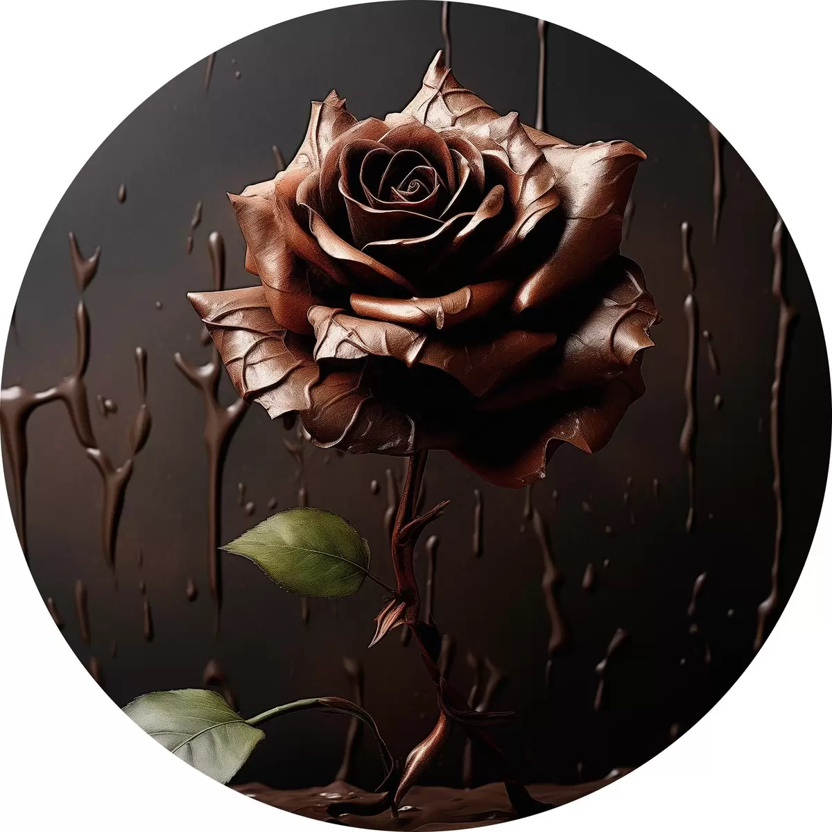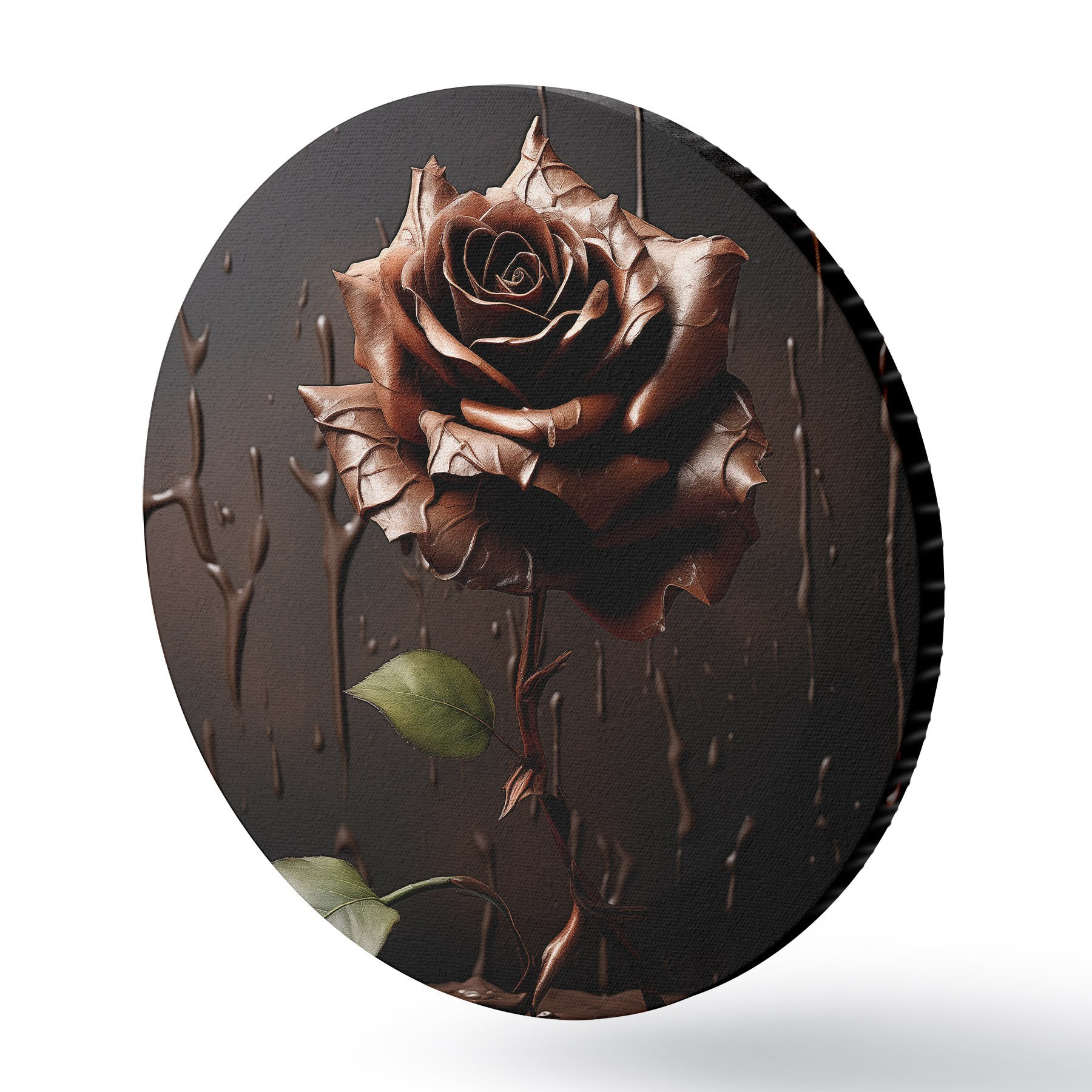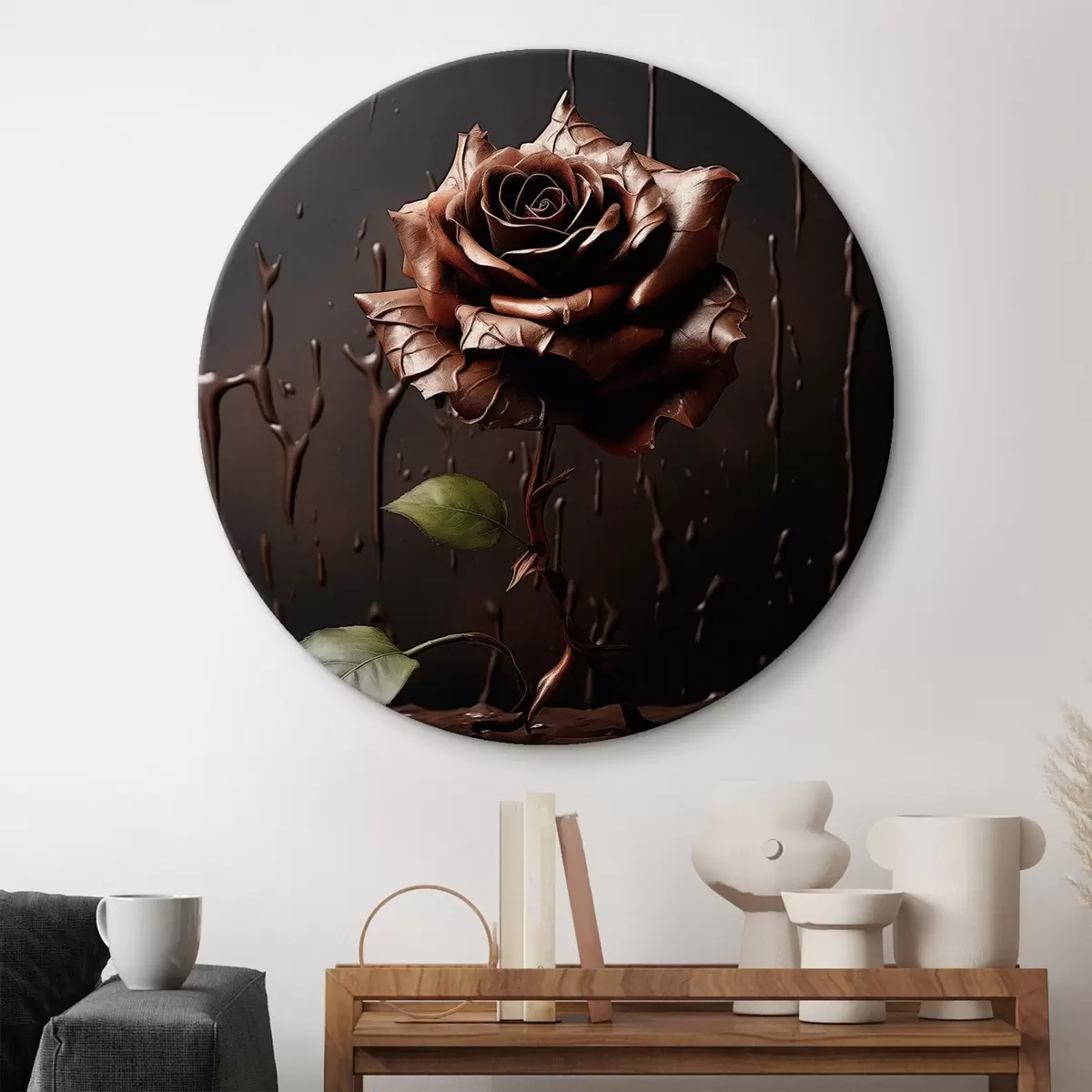 Apaļas gleznas Brūna roze uz tumša fona ar šokolādes šļakatām r44381