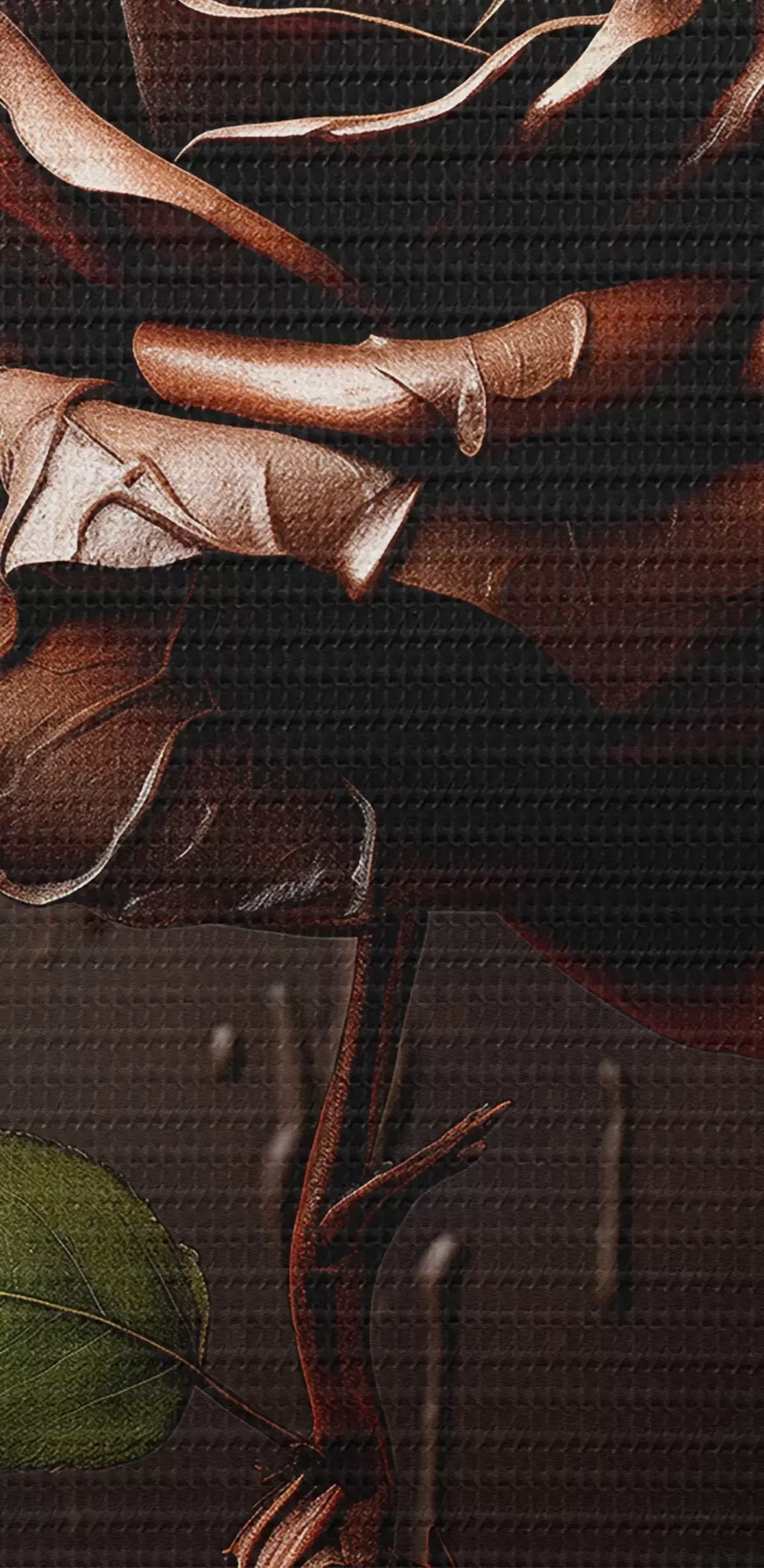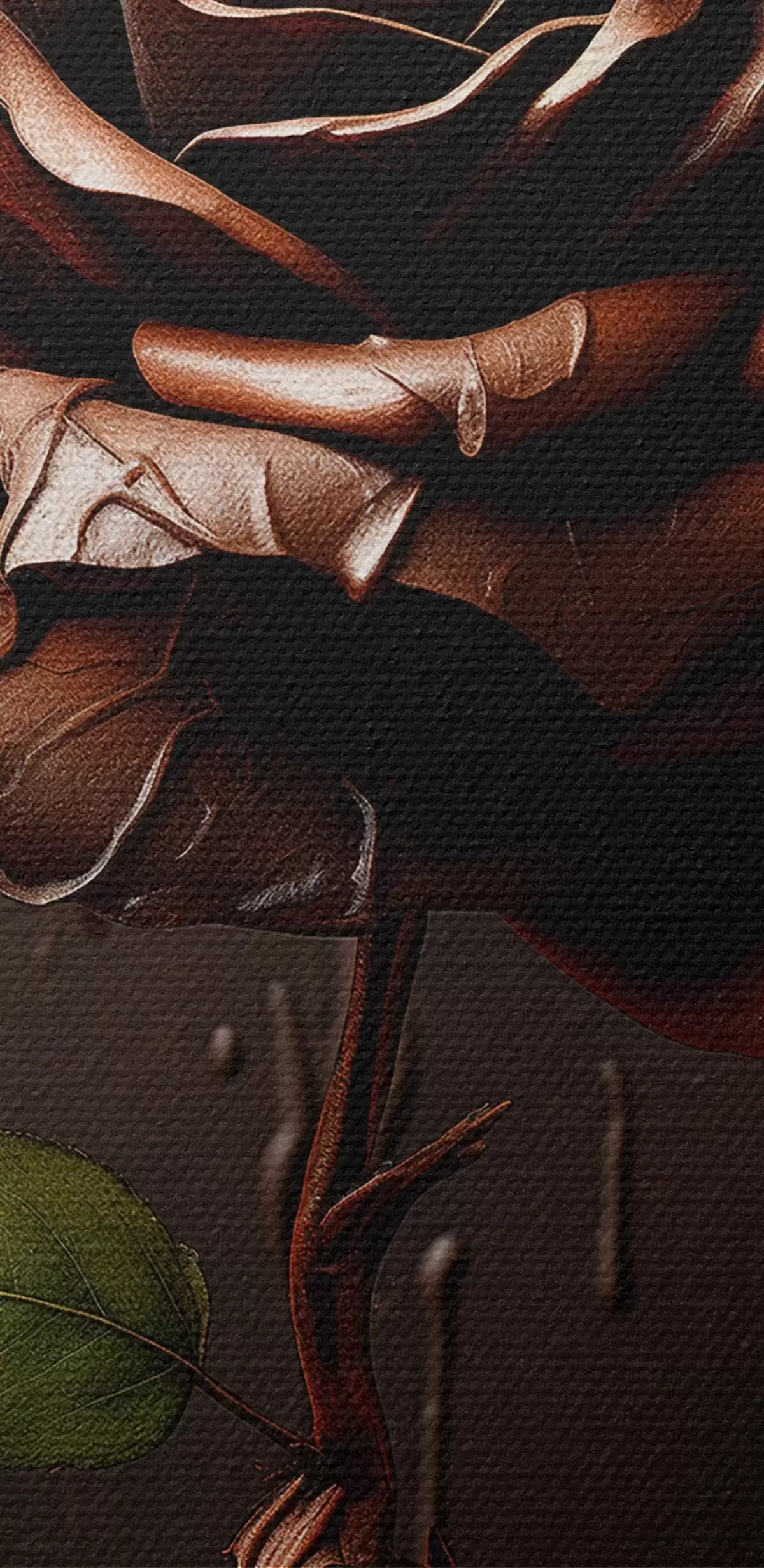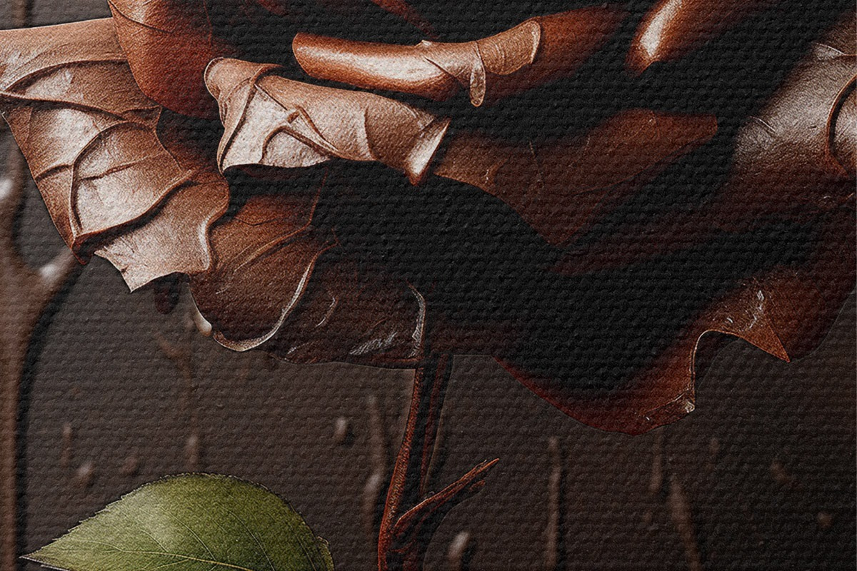Attēls Brūna roze uz tumša fona ar šokolādes šļakatām Nr r44381