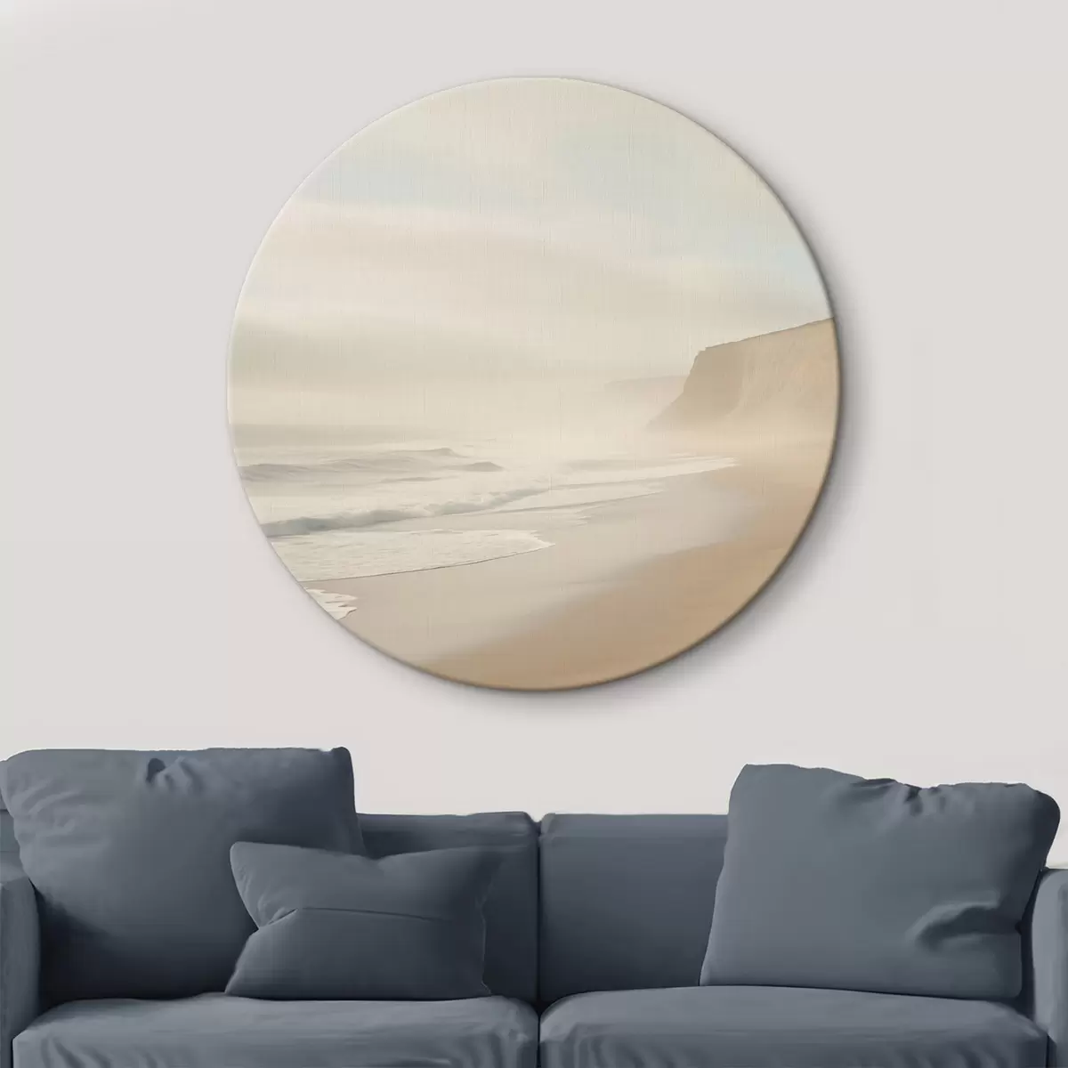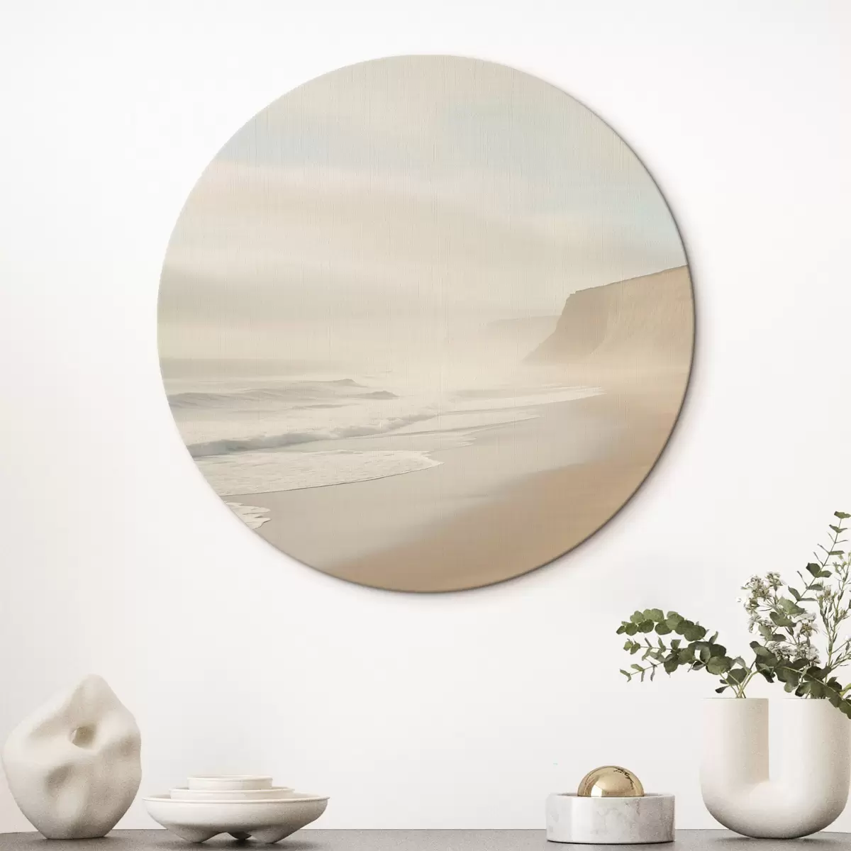 Apaļas gleznas Smilšainas pludmales ainava ar klinti skaidrā saulainā dienā r44391