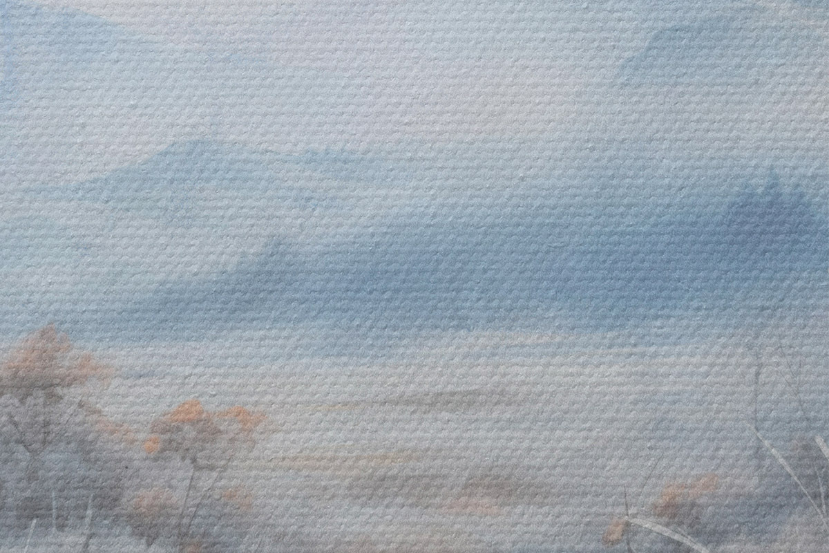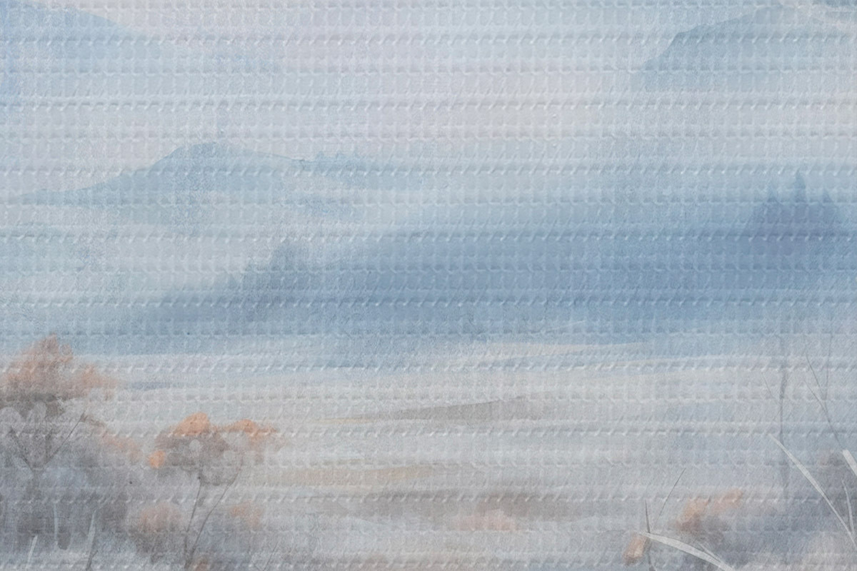 Attēls Teksturēta ainava ar kalniem, sausu zāli un mežu, pieklusinātas krāsas Nr r44402