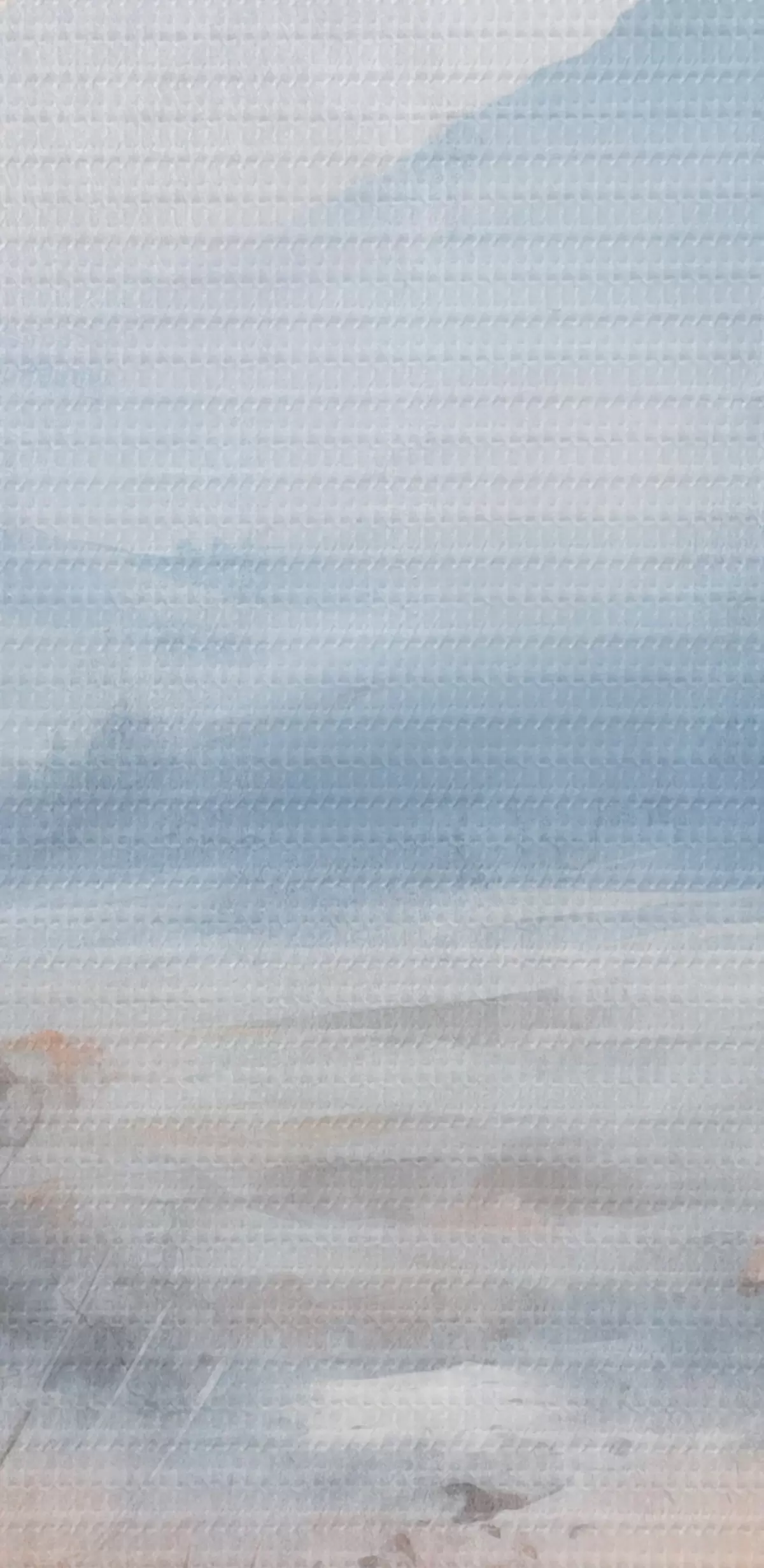 Smalkais diegu pinums uz šī audekla atgādina profesionālu mākslinieku audeklu virsmu.