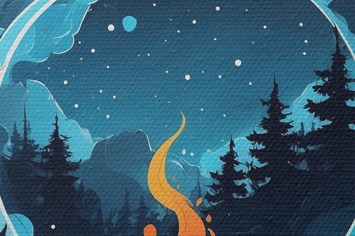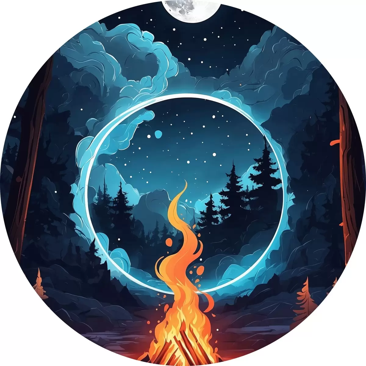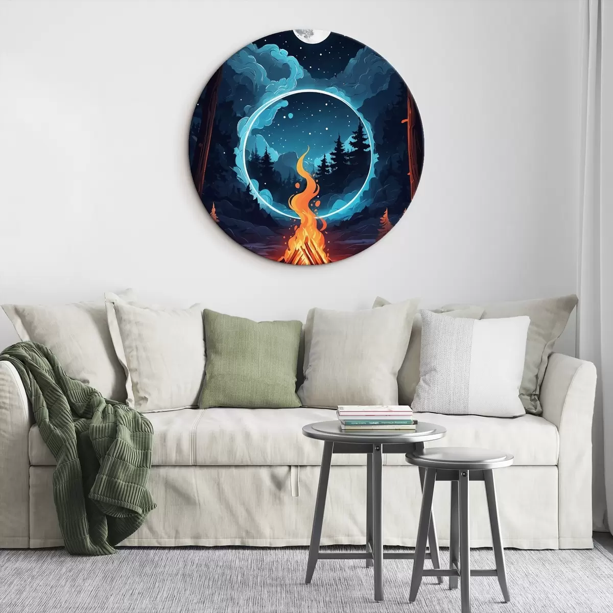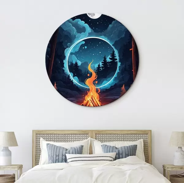 Apaļas gleznas Ugunskurs nakts mežā r44436