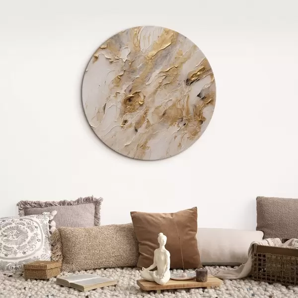 Apaļas gleznas Abstraktā dzeltena un balta ceļš akrila glezniecības stilā Sarkans zieds uz balti sarkana fona balta eļļas glezna r44439