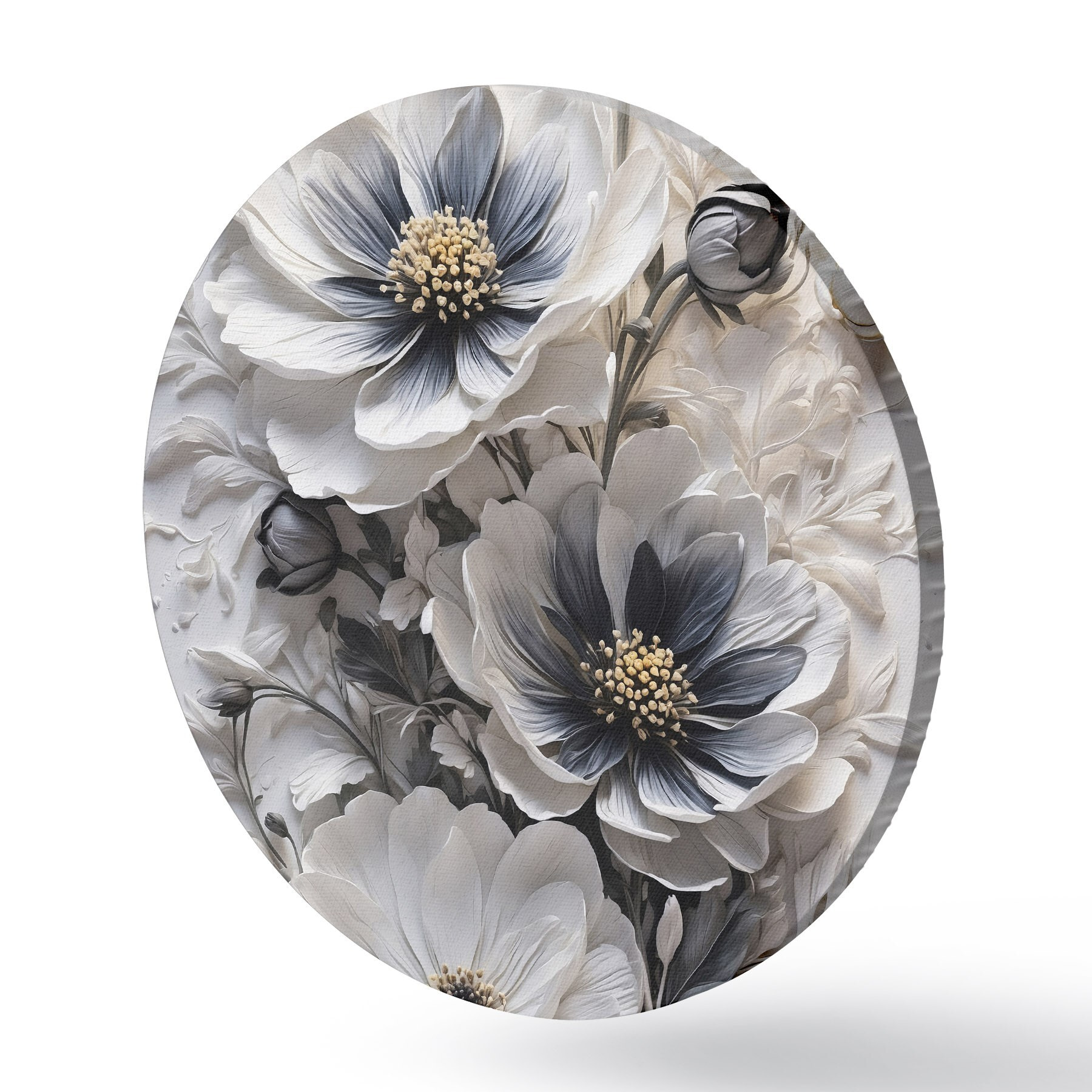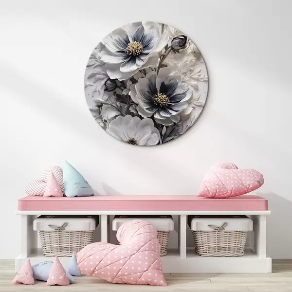 Apaļas gleznas Melni un balti ziedi uz balta fona r44446