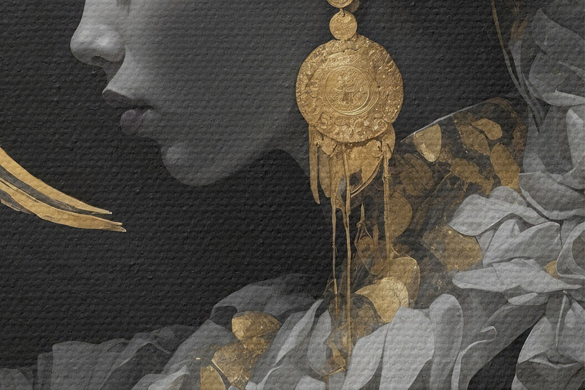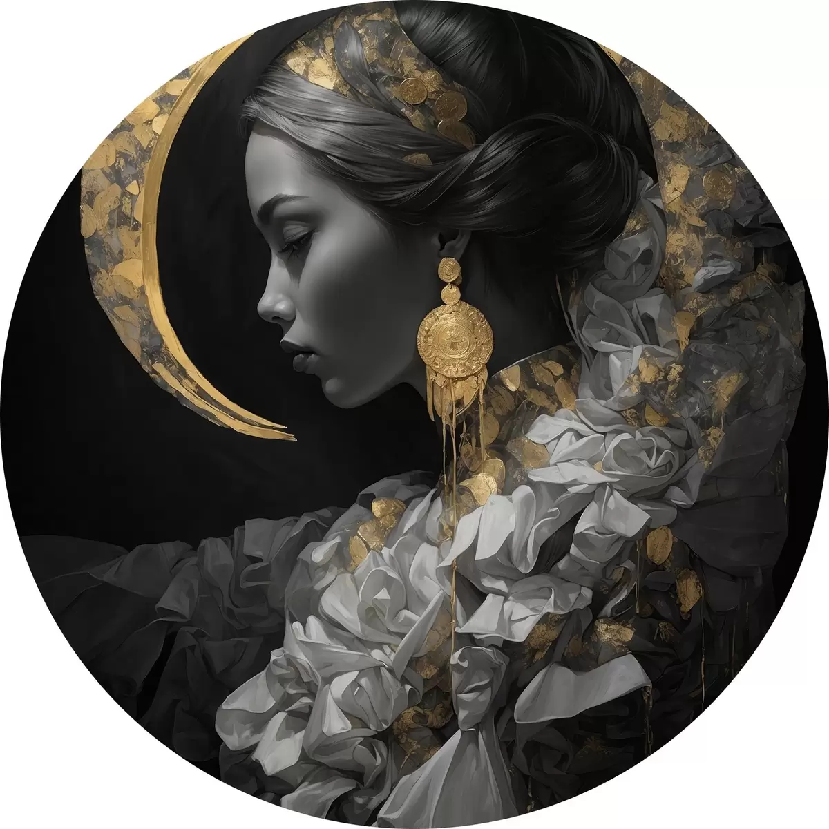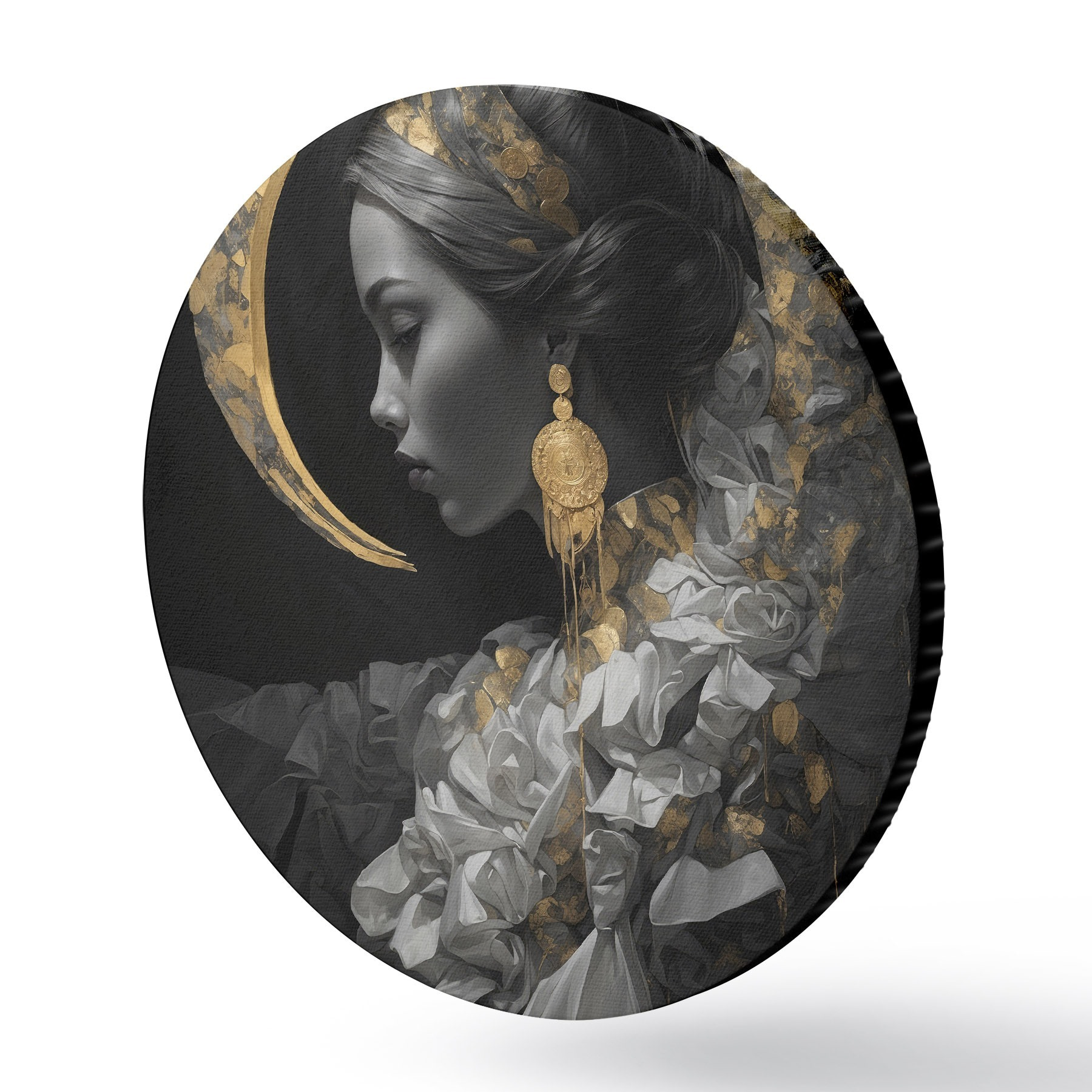 Apaļas gleznas Meitene un dzeltens pusmēness uz melna fona r44449