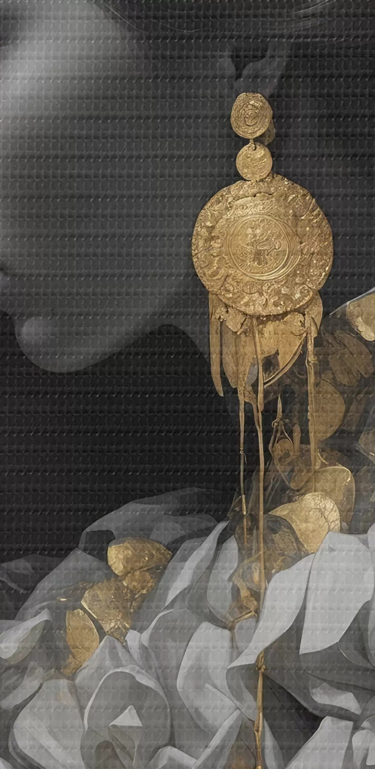 Smalkais diegu pinums uz šī audekla atgādina profesionālu mākslinieku audeklu virsmu.