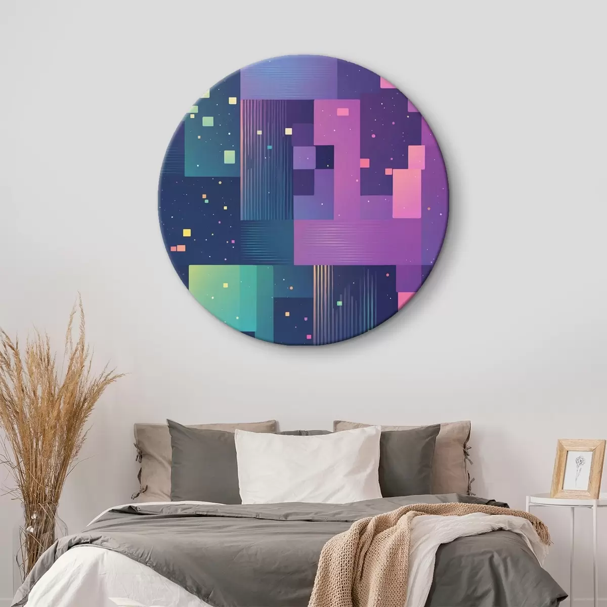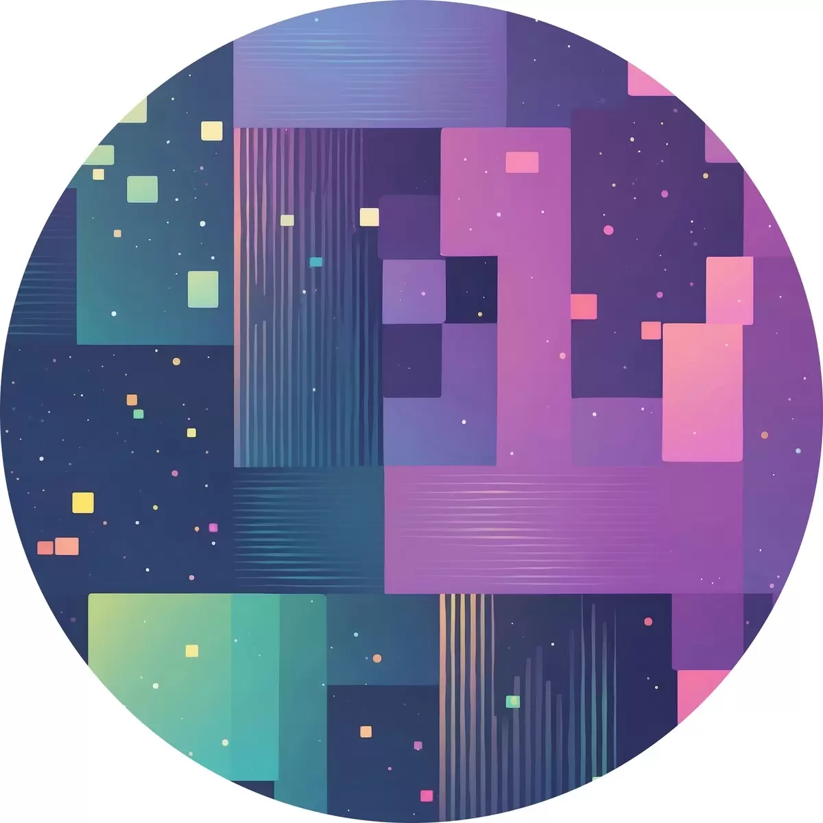 Apaļas gleznas Abstraktā glezniecība ar daudzkrāsainām taisnstūra figūrām r44457