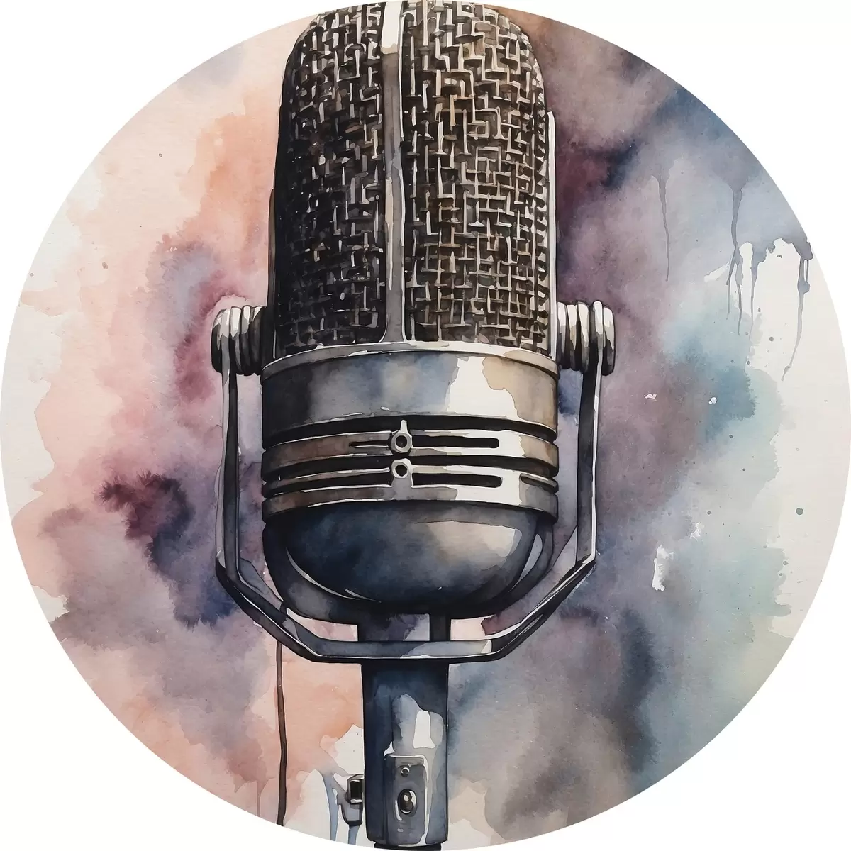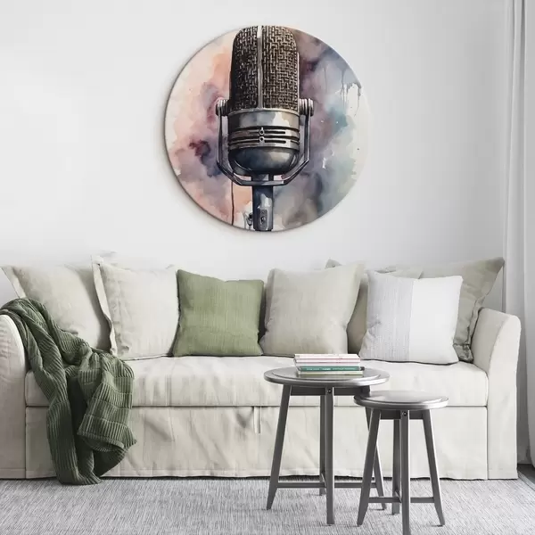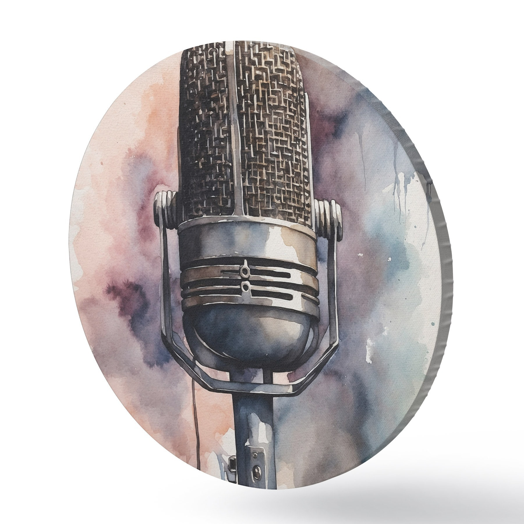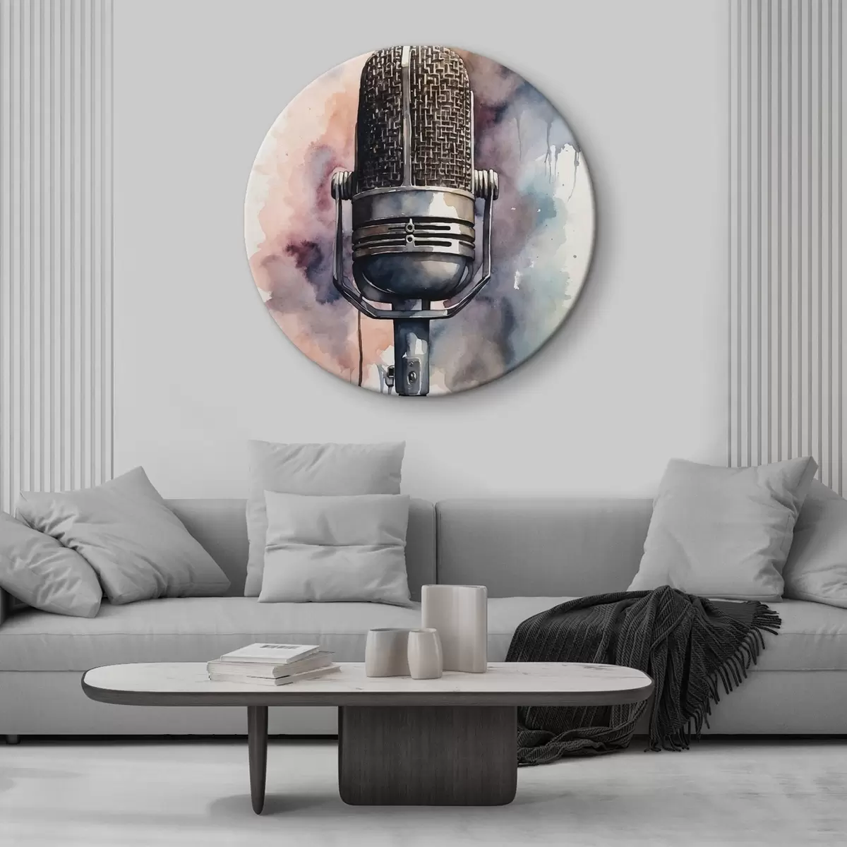 Apaļas gleznas Mikrofons uz akvareļa fona r44463