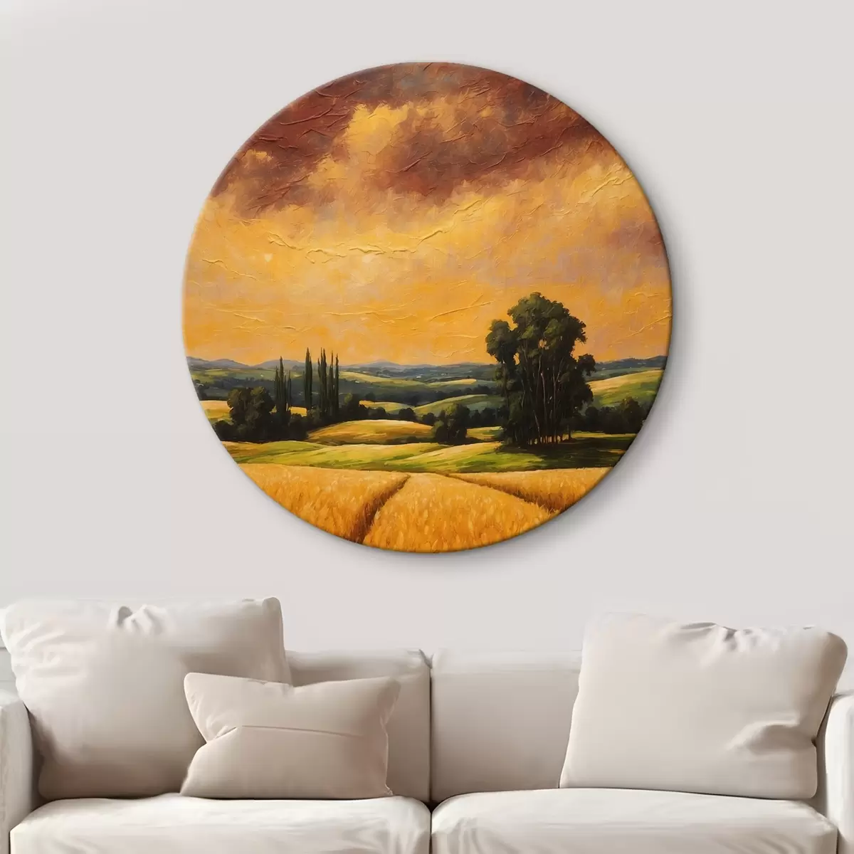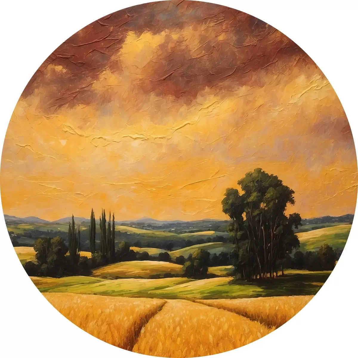 Apaļas gleznas Kviešu lauks akrila glezniecības stilā r44464