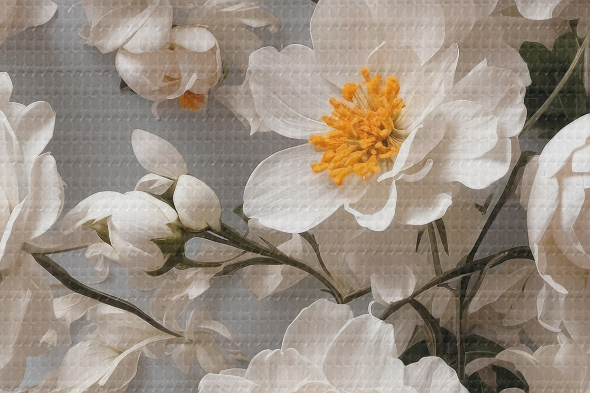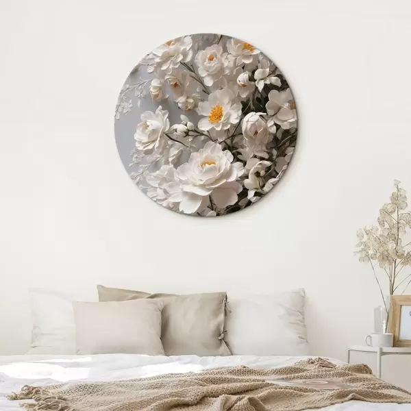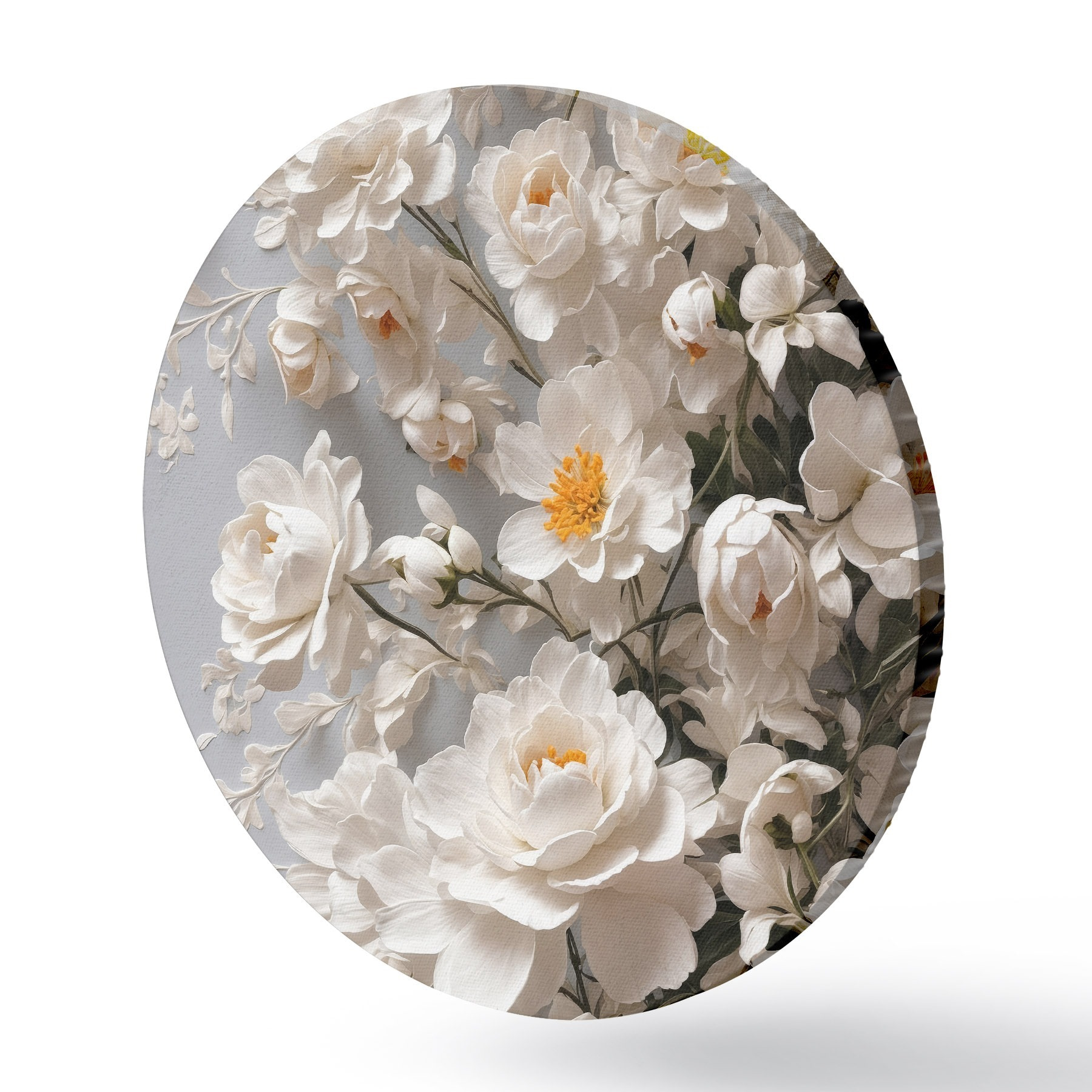 Apaļas gleznas Balti ziedi un lapas uz balta fona r44465
