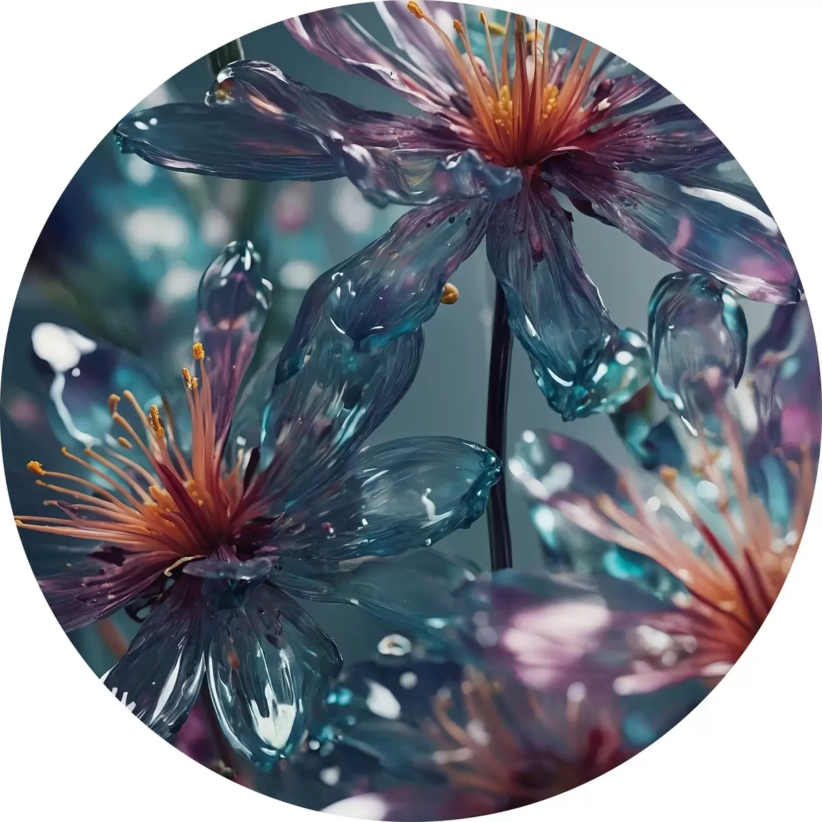Apaļas gleznas Caurspīdīgi ziedi uz neskaidra fona r44469