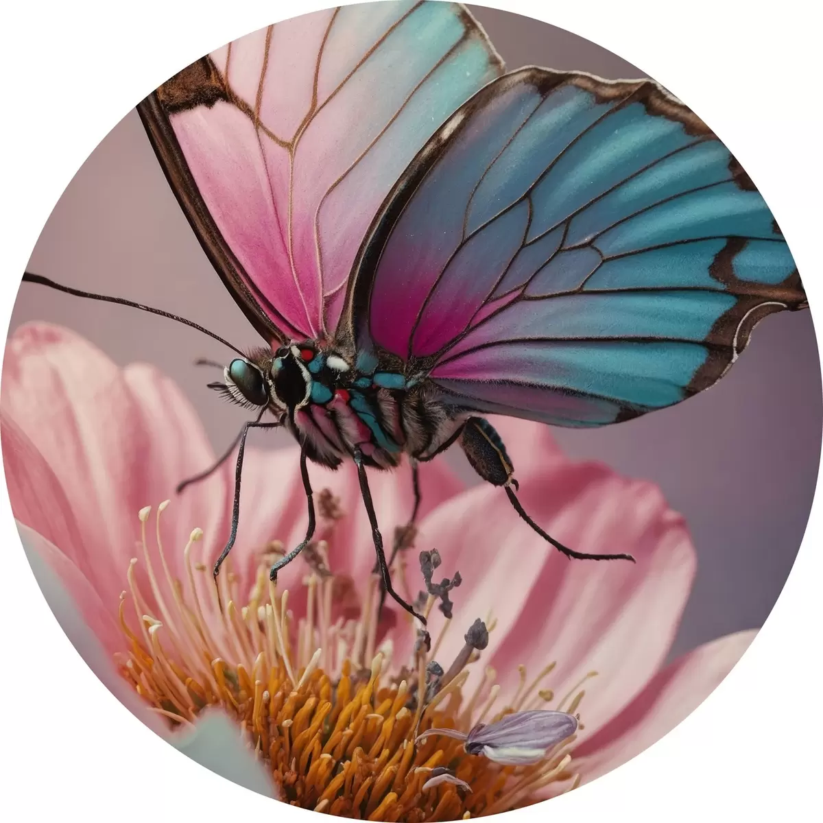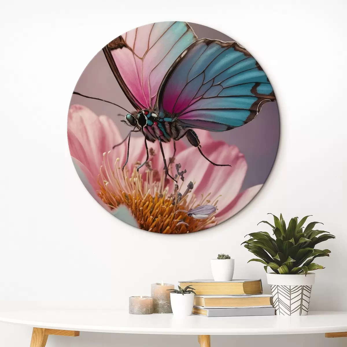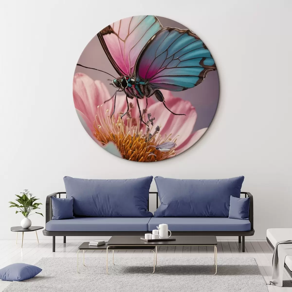 Apaļas gleznas Tauriņš sēž uz zieda r44470