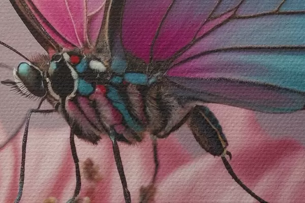 Smalkais diegu pinums uz šī audekla atgādina profesionālu mākslinieku audeklu virsmu.