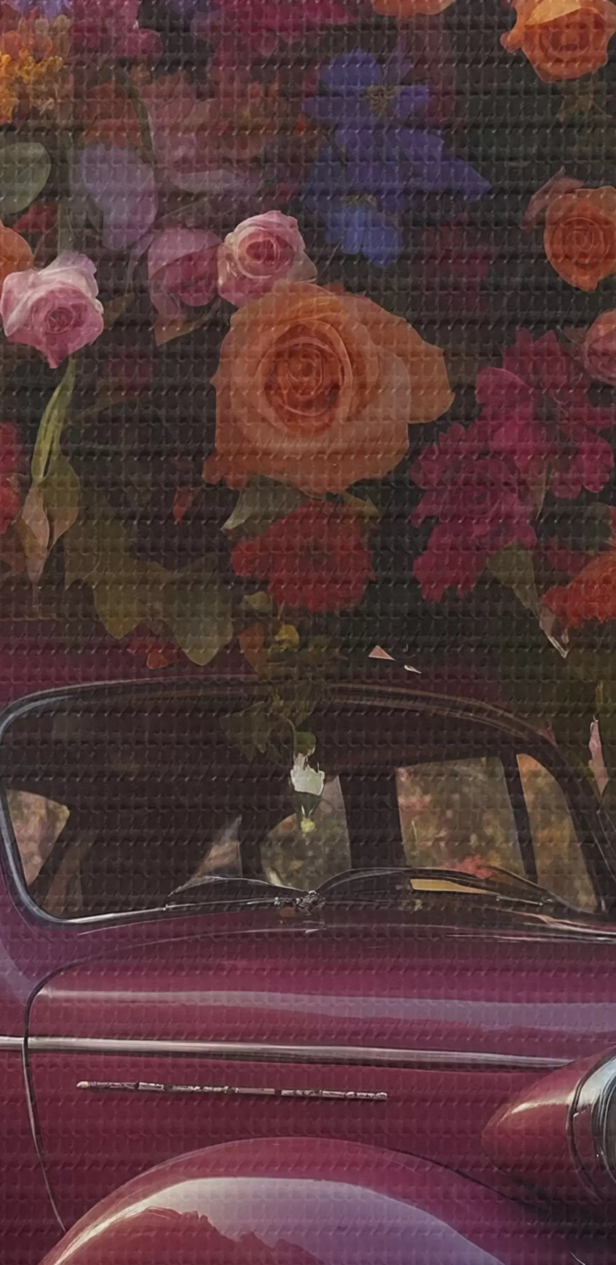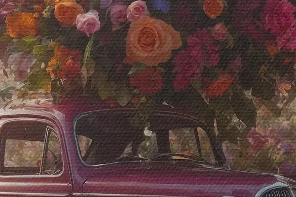 Attēls Retro auto un milzīgs ziedu pušķis Nr r44471
