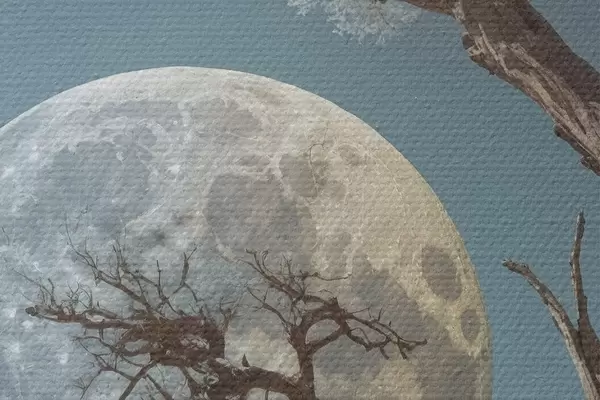 Attēls Koks aug ezera vidū uz mēness fona Nr r44481