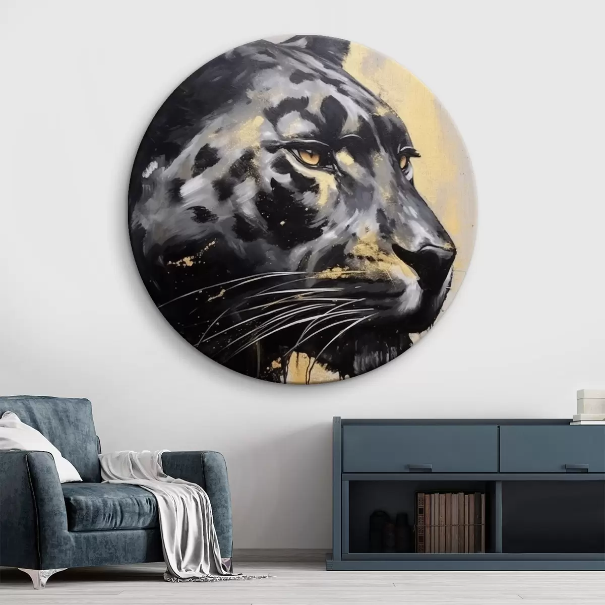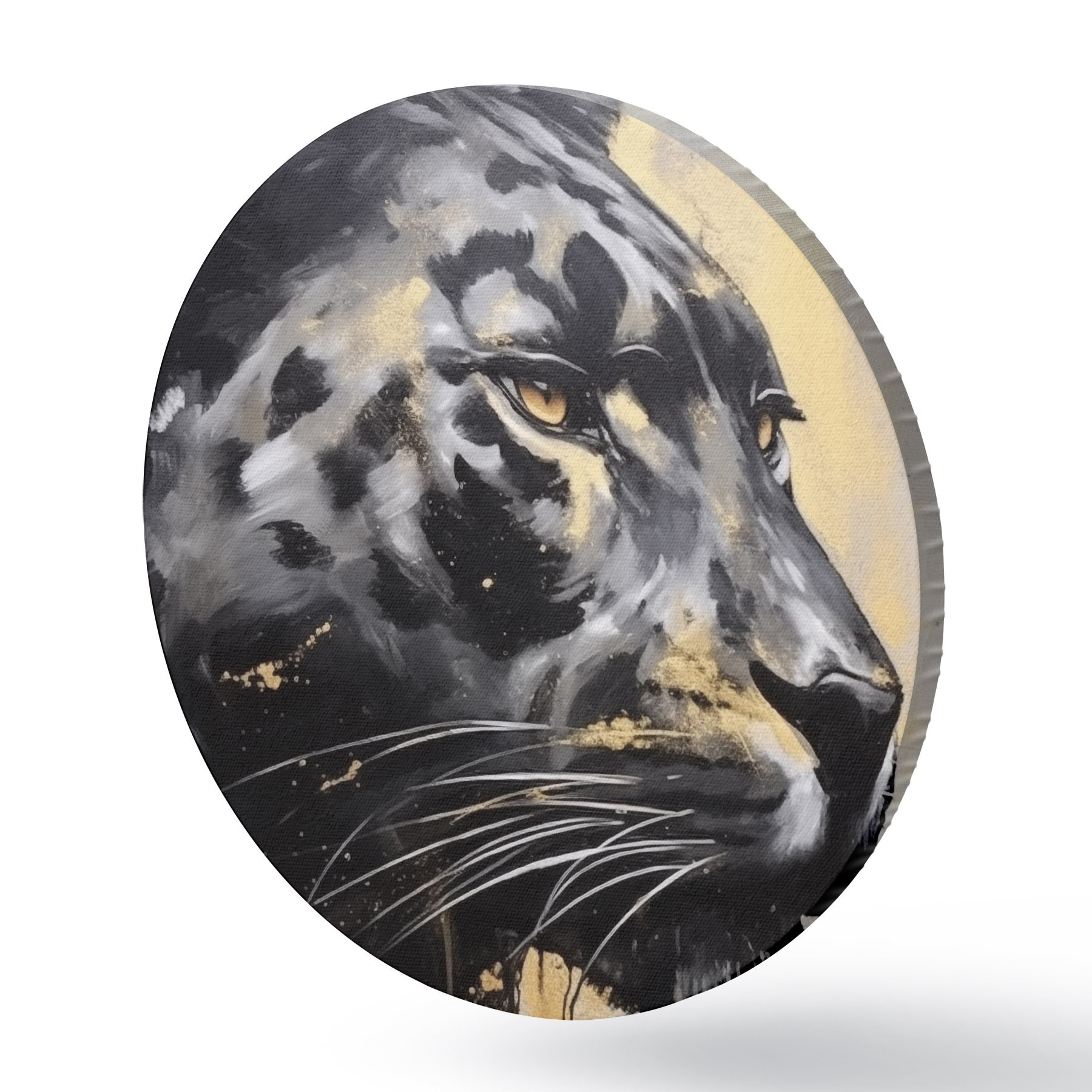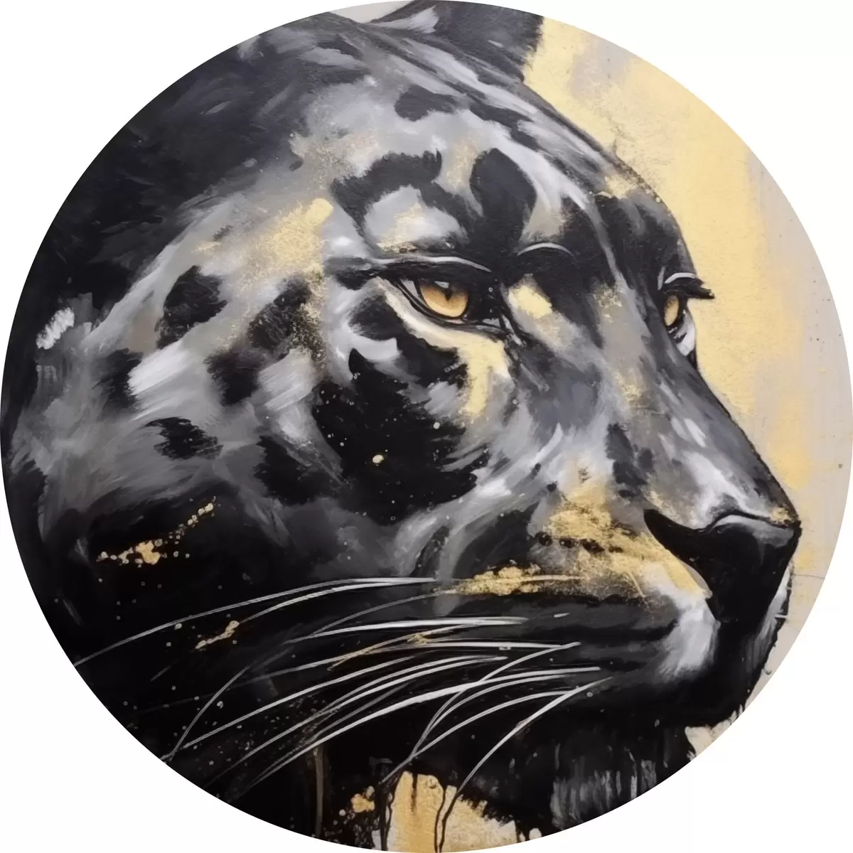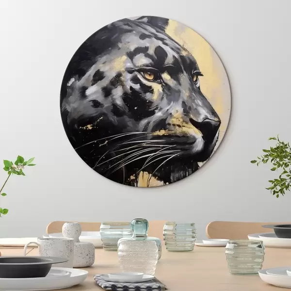 Apaļas gleznas Melna pantera ar dzeltenām acīm r44493