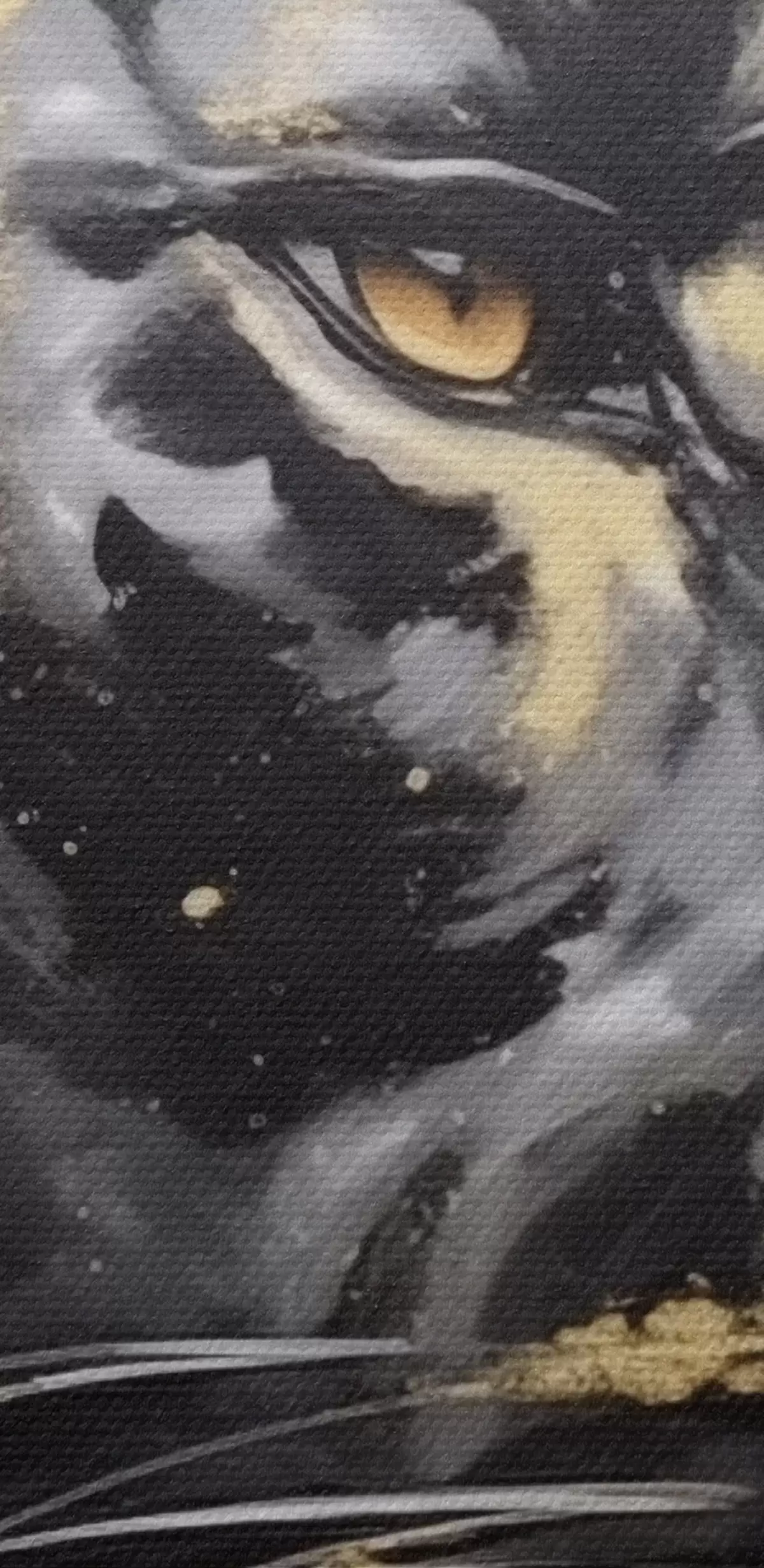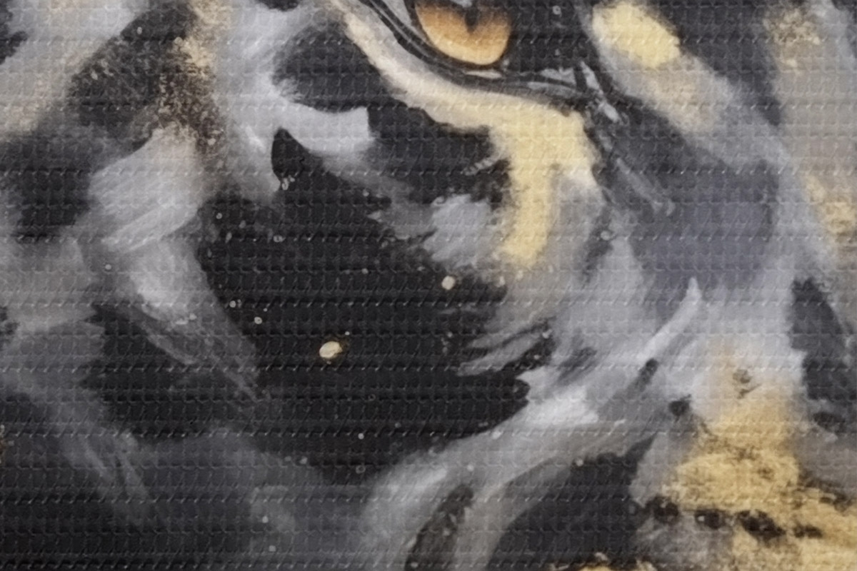 Smalkais diegu pinums uz šī audekla atgādina profesionālu mākslinieku audeklu virsmu.