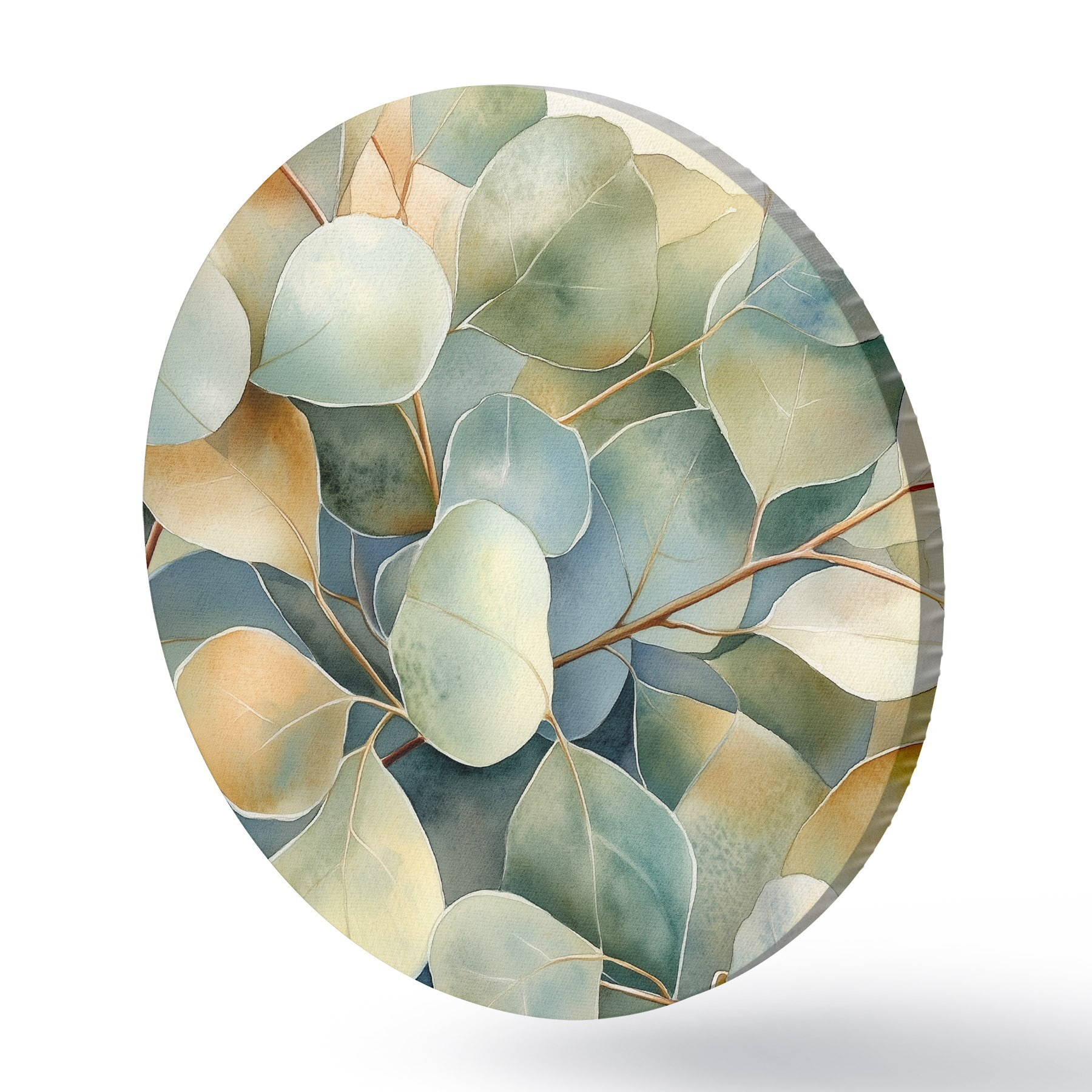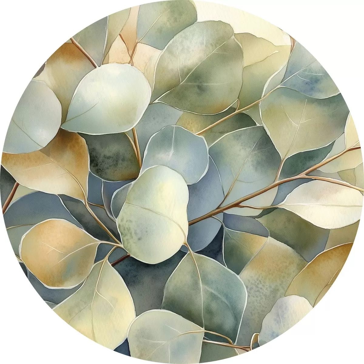 Apaļas gleznas Eikalipta lapas, akvareļu stilā, daba r44502