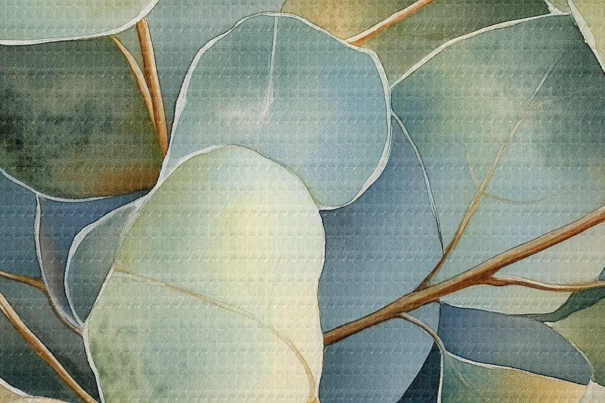 Attēls Eikalipta lapas, akvareļu stilā, daba Nr r44502