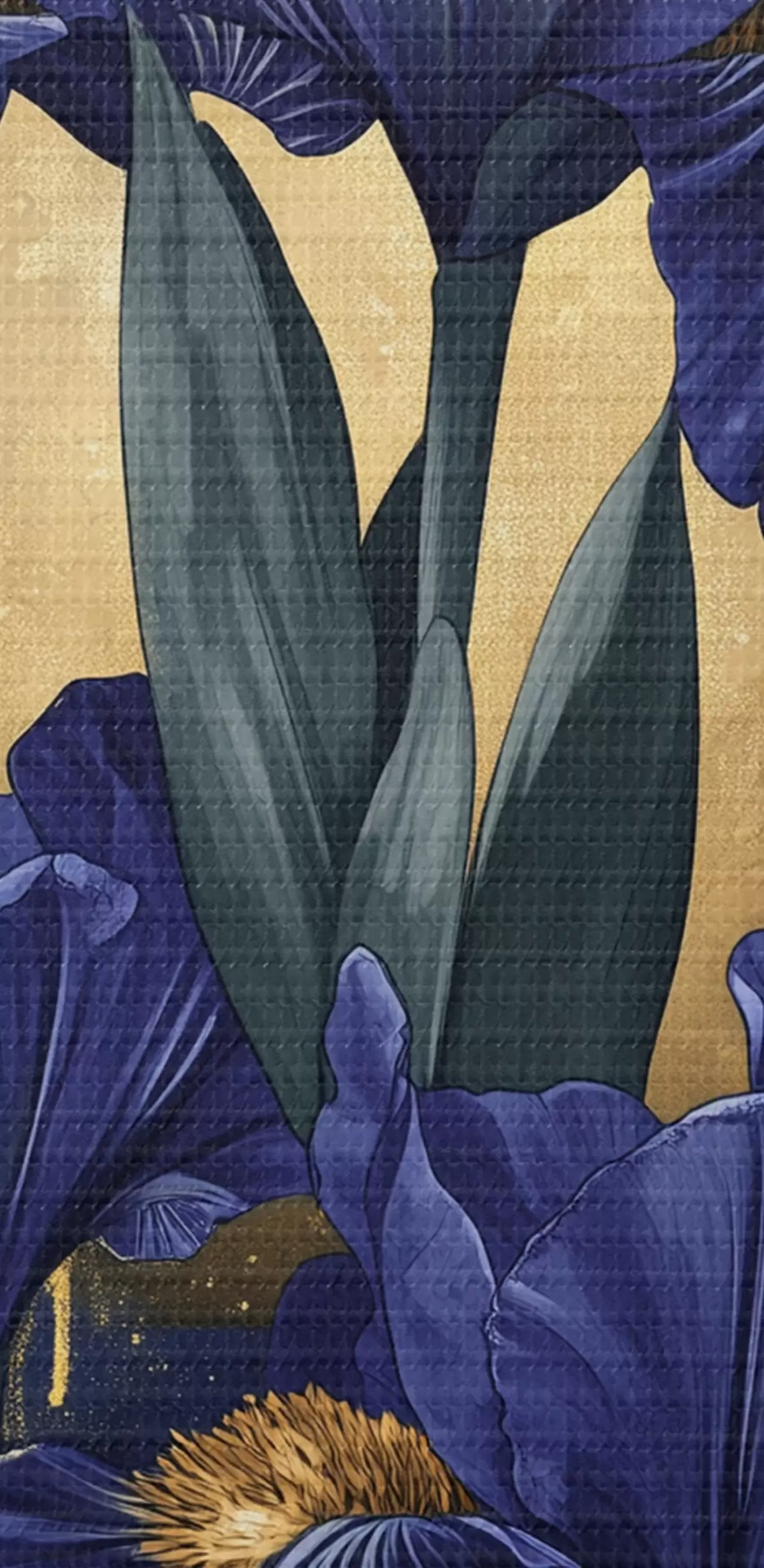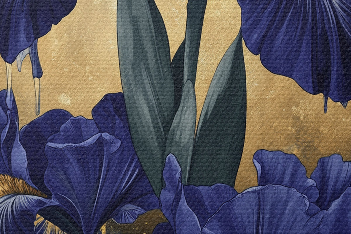 Attēls Īrisu ziedi, mirdzošs mēness, nakts debesis, zilas krāsas Nr r44510