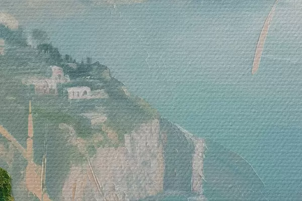 Smalkais diegu pinums uz šī audekla atgādina profesionālu mākslinieku audeklu virsmu.