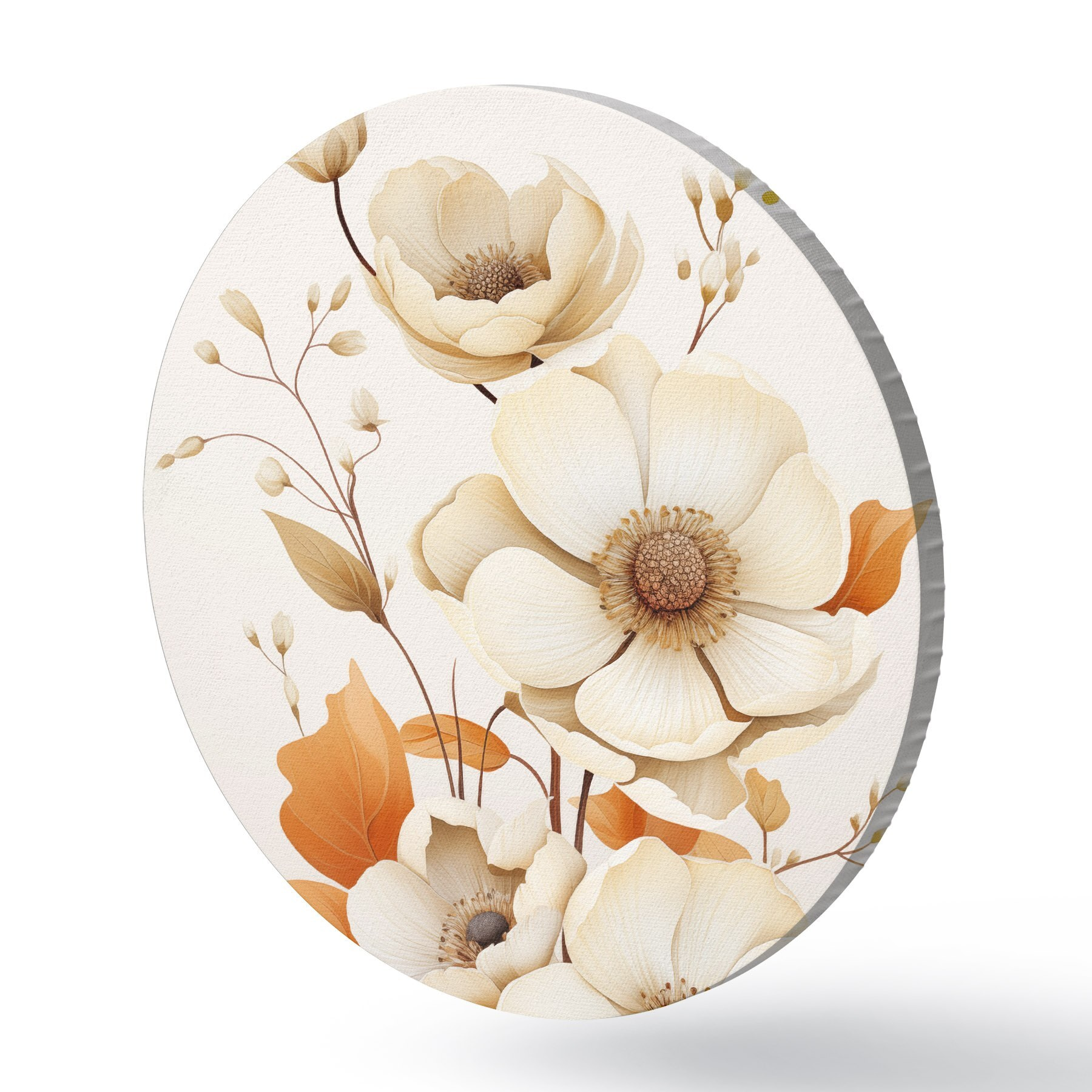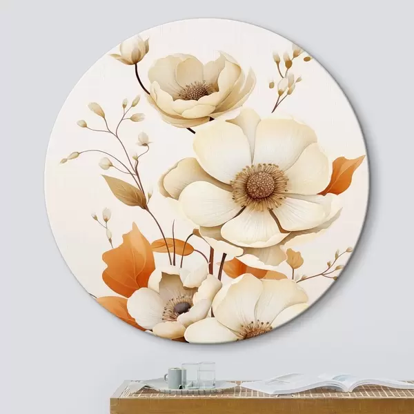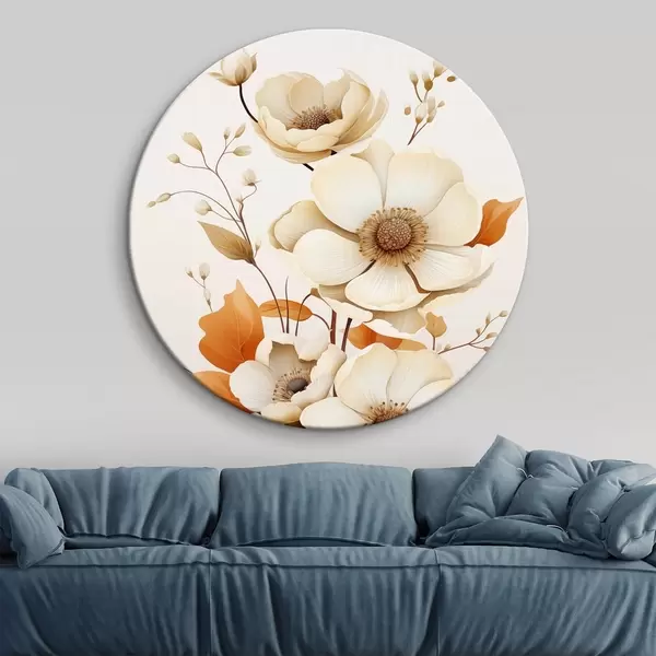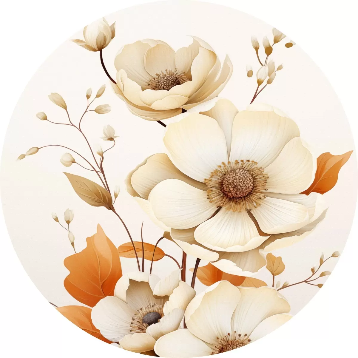 Apaļas gleznas Gaiši ziedi uz bēša fona r44549