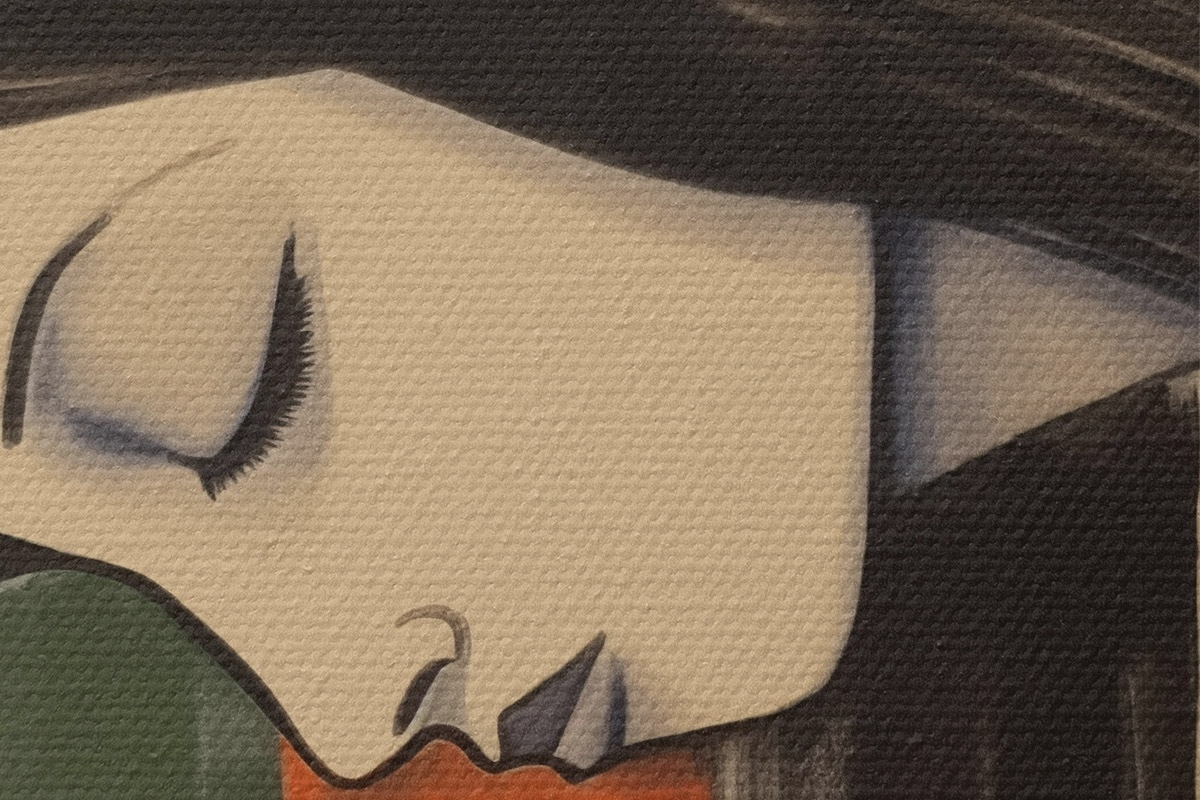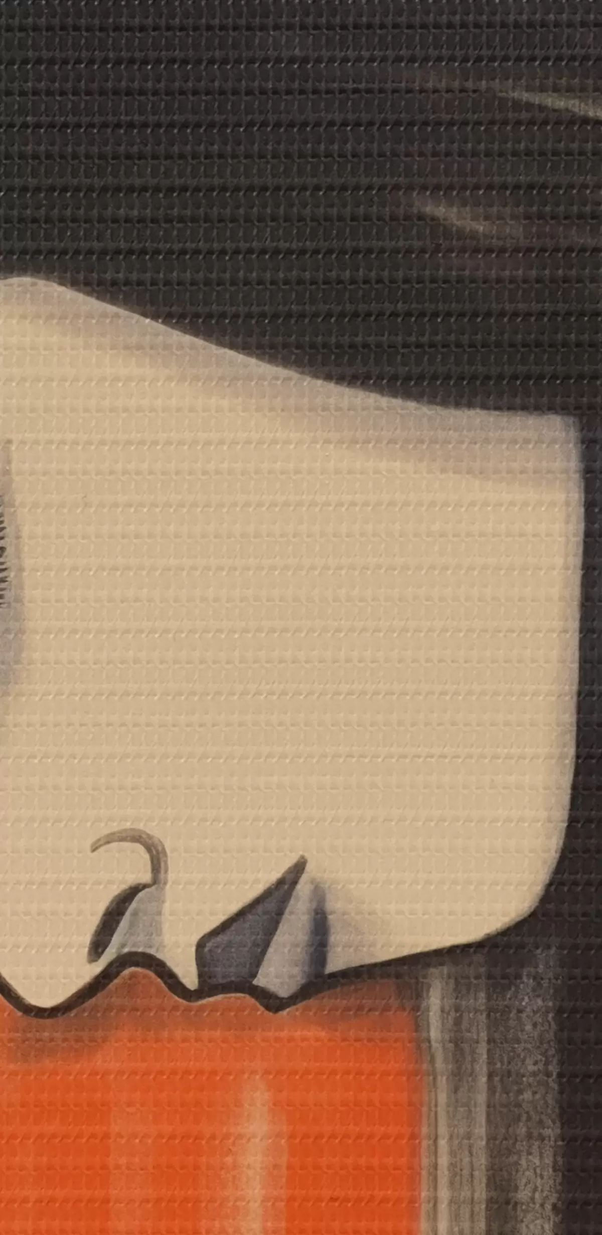 Smalkais diegu pinums uz šī audekla atgādina profesionālu mākslinieku audeklu virsmu.