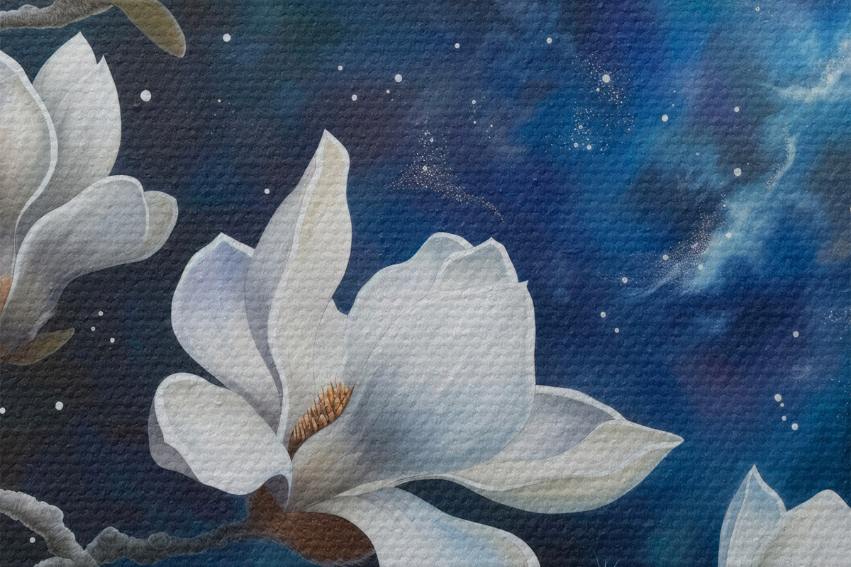 Attēls Magnolijas ziedi pret debesīm Nr r44585