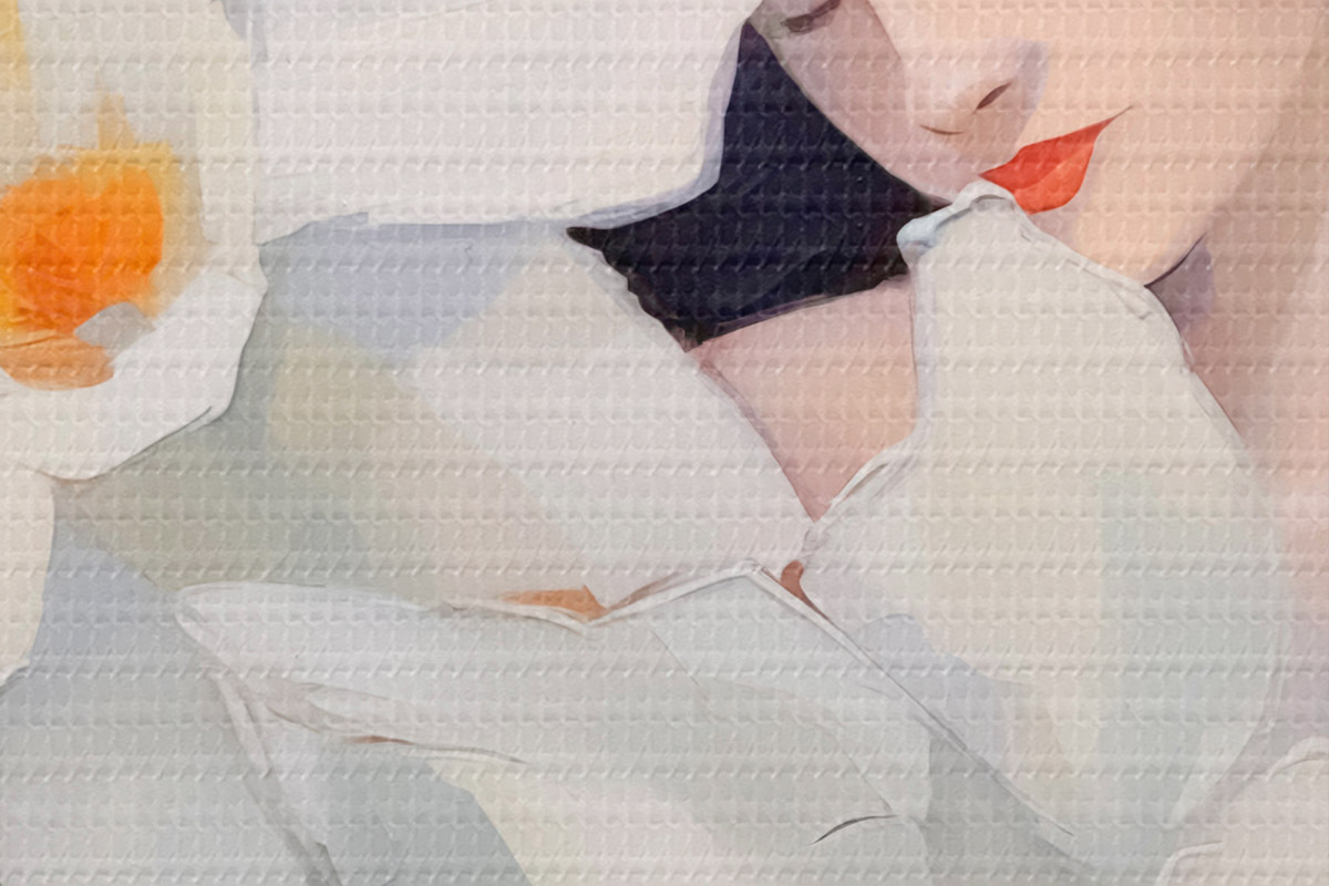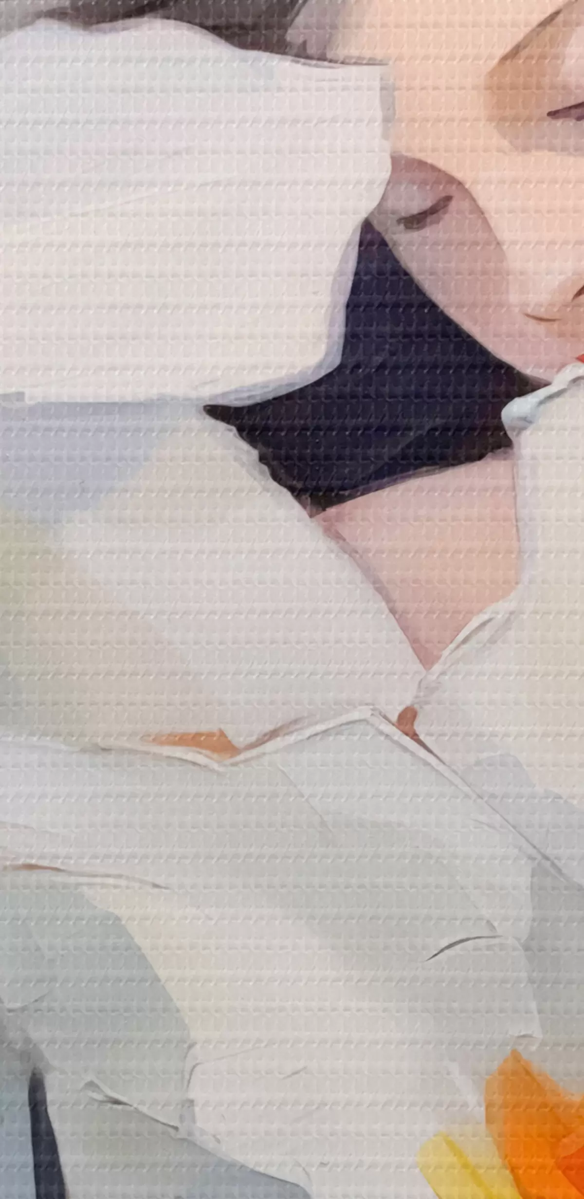 Smalkais diegu pinums uz šī audekla atgādina profesionālu mākslinieku audeklu virsmu.