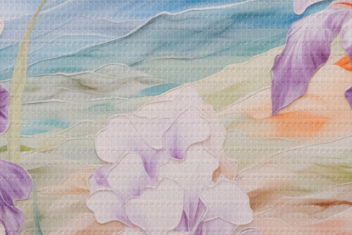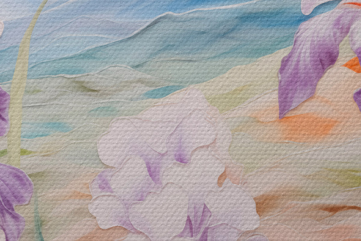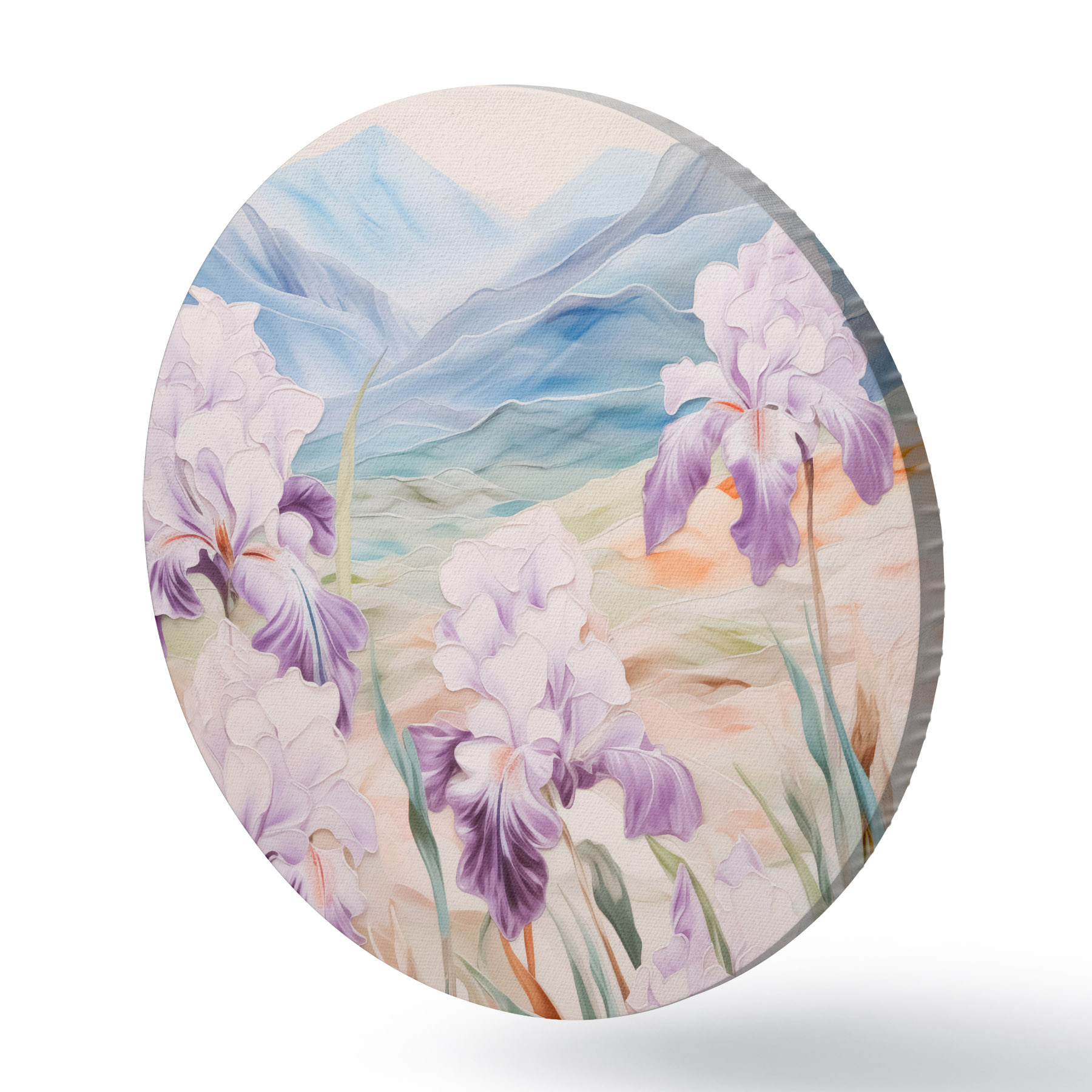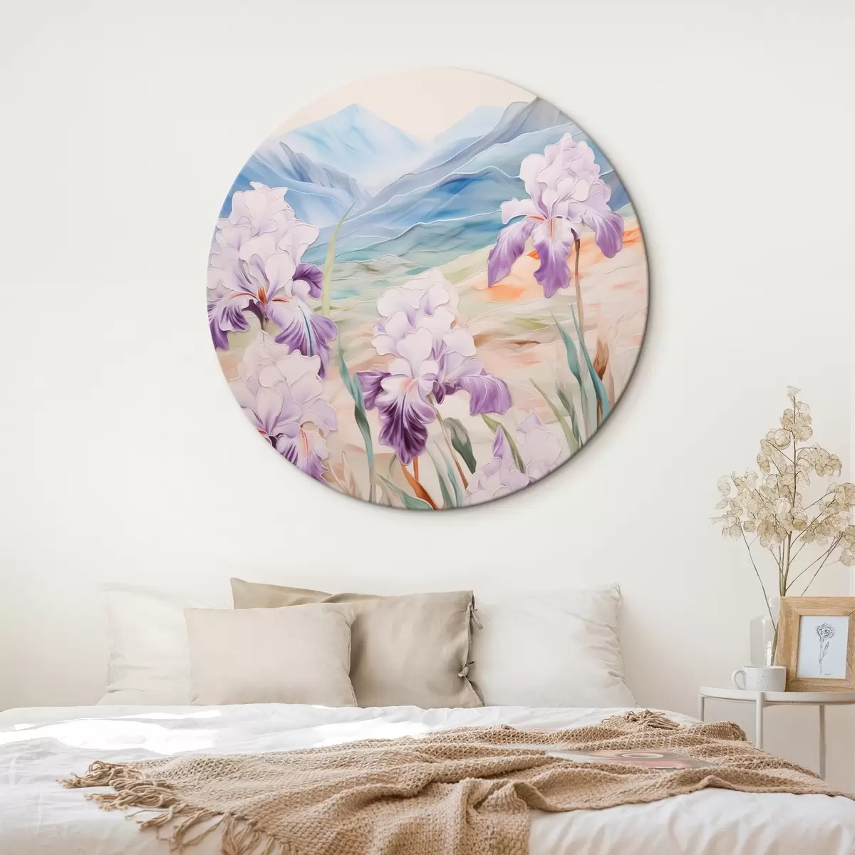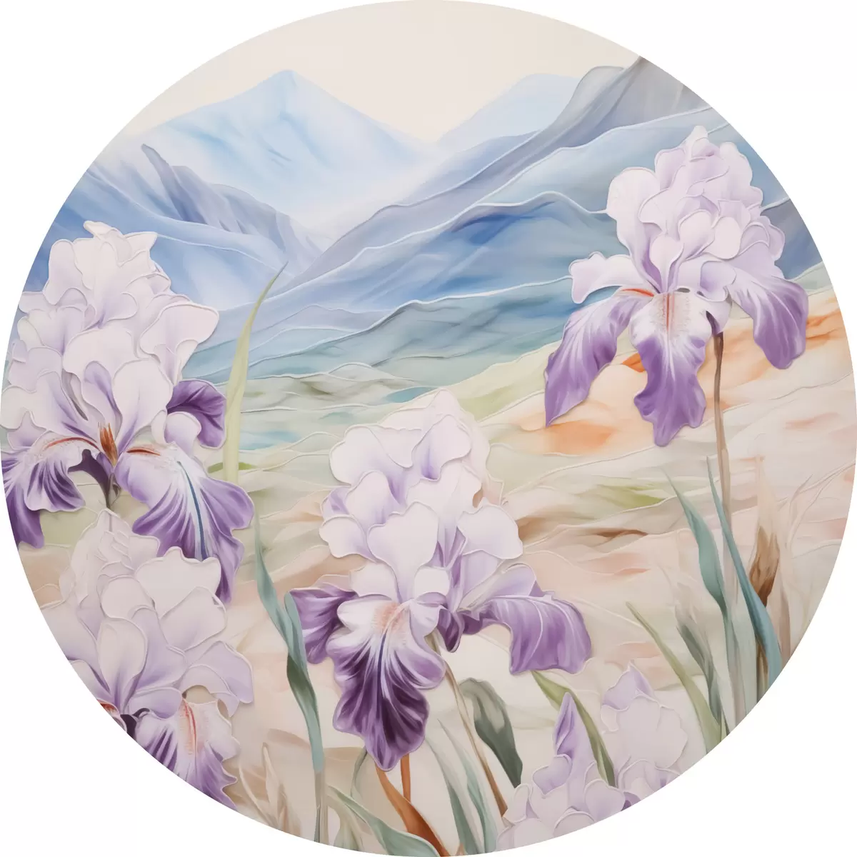 Apaļas gleznas Īrisi uz kalnu fona r44599