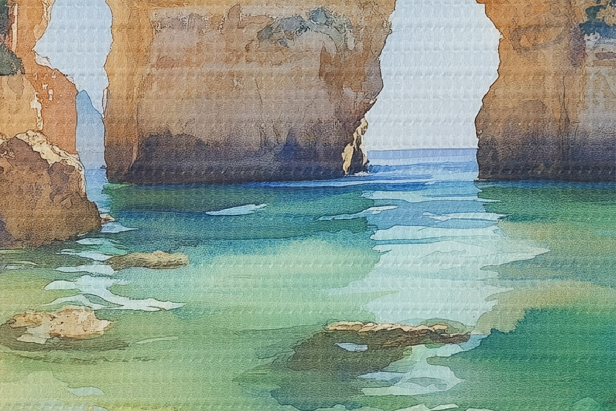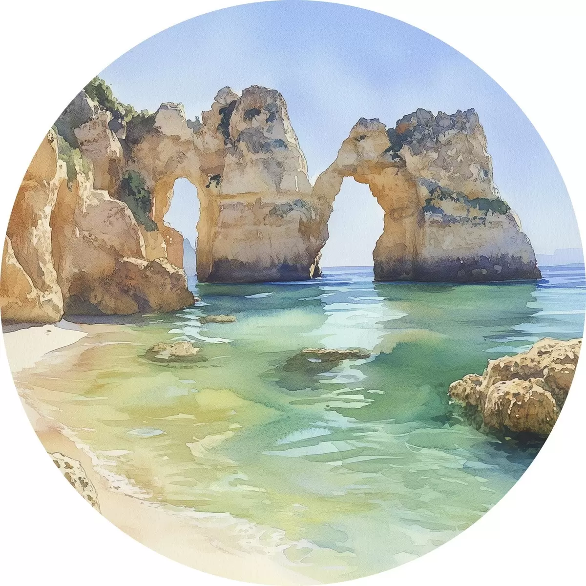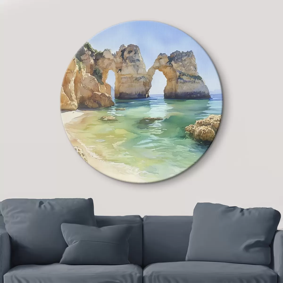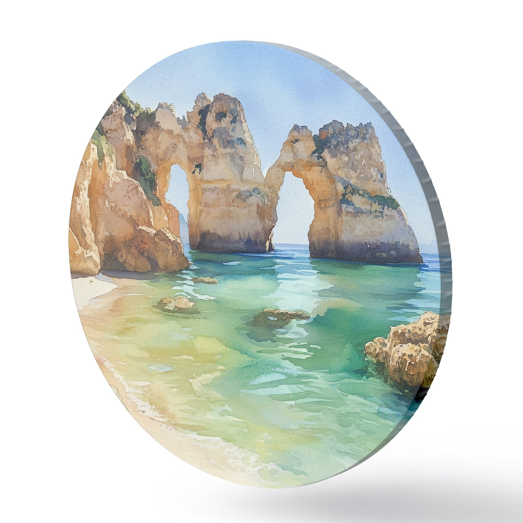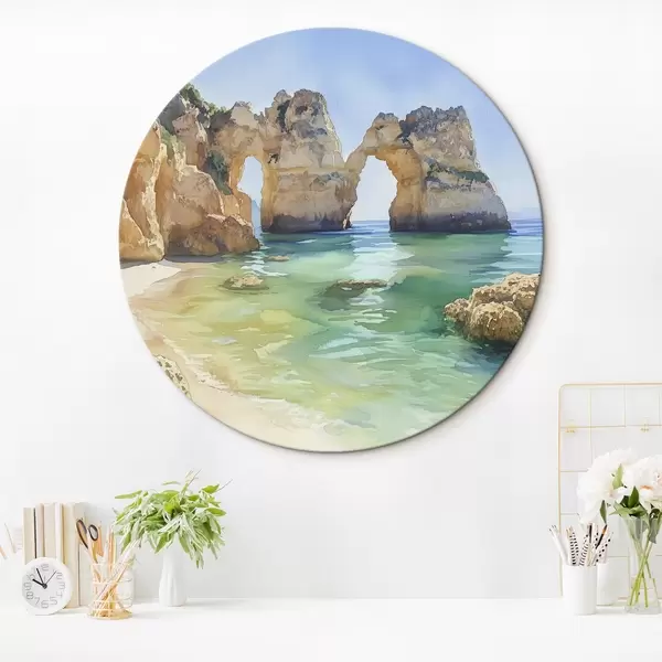 Apaļas gleznas Okeāna pludmale ar klinšu klintīm, Portugāle, vasara, akvamarīns r44608