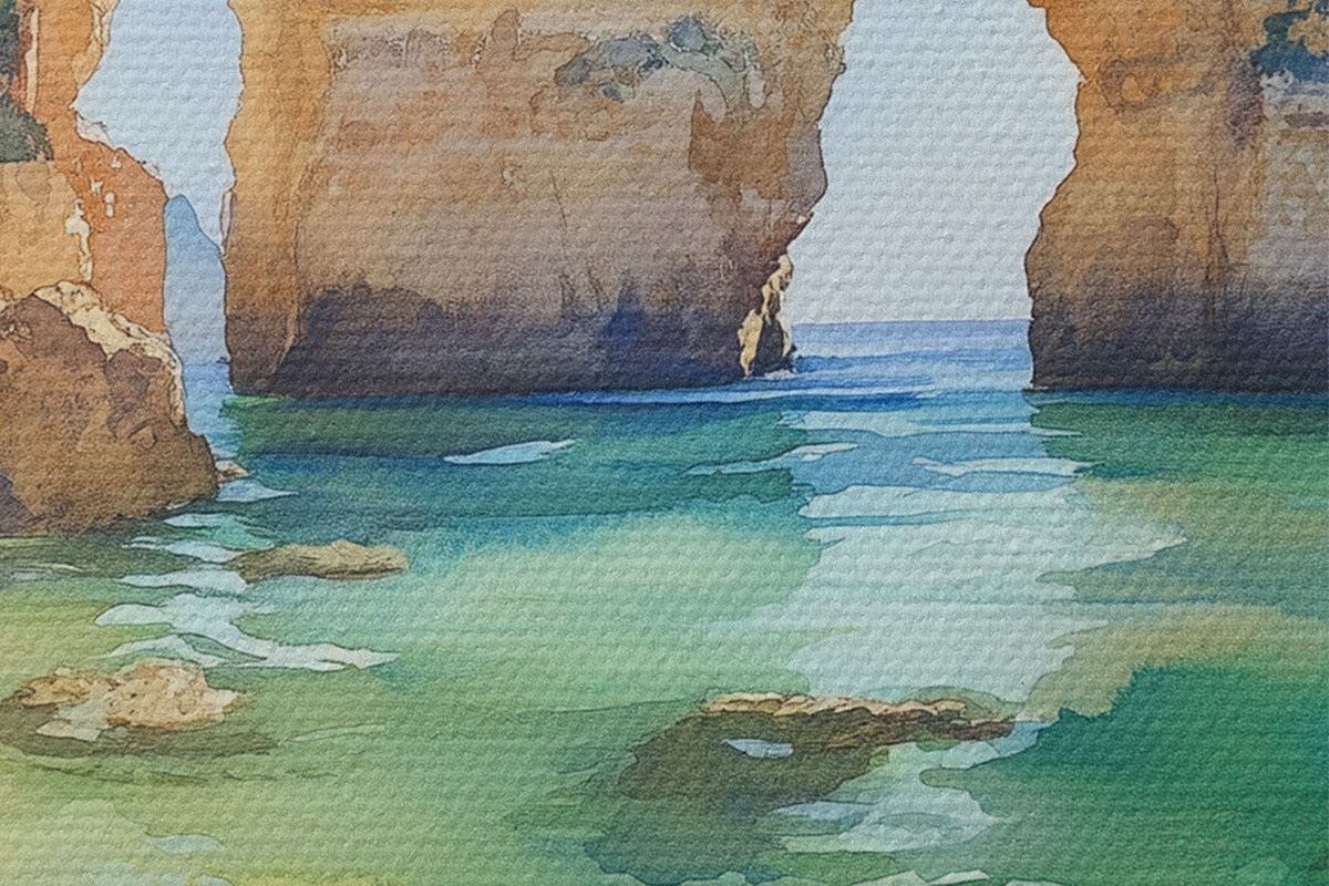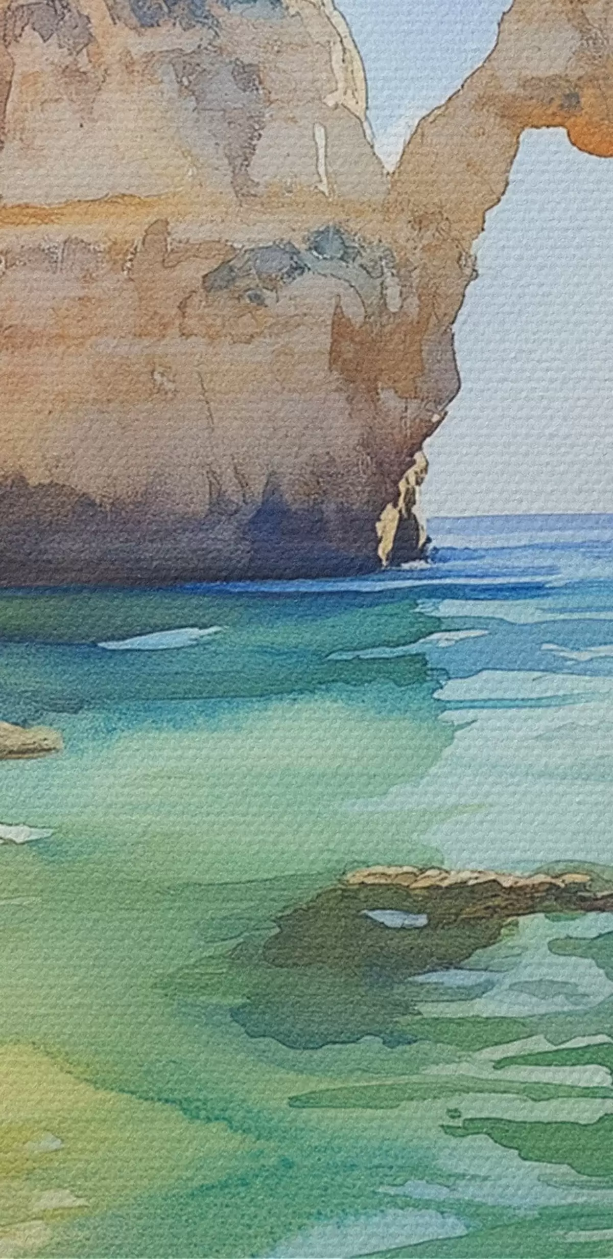 Attēls Okeāna pludmale ar klinšu klintīm, Portugāle, vasara, akvamarīns Nr r44608