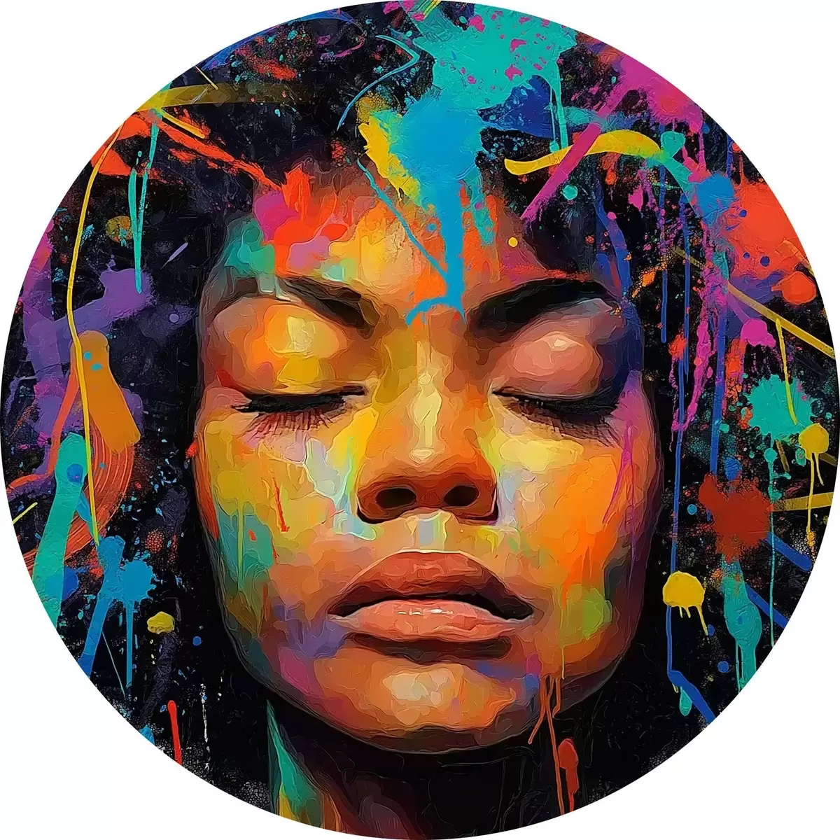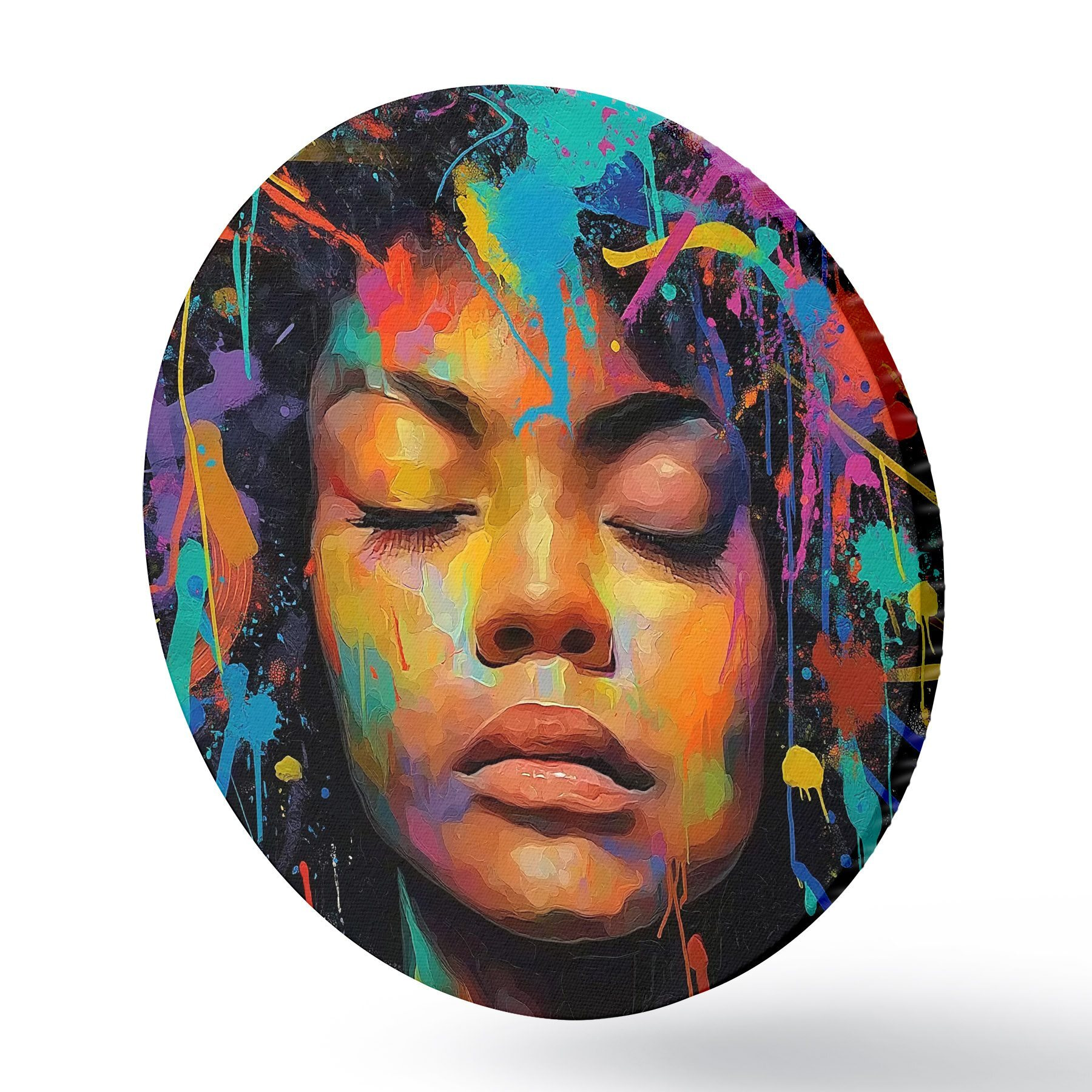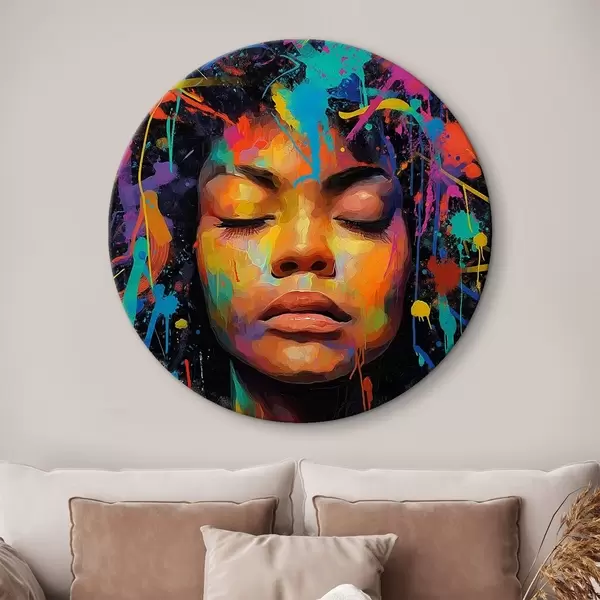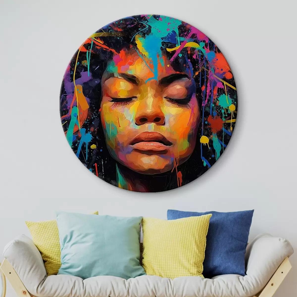 Apaļas gleznas Meitene spilgtās krāsās, abstraktā stilā r44618