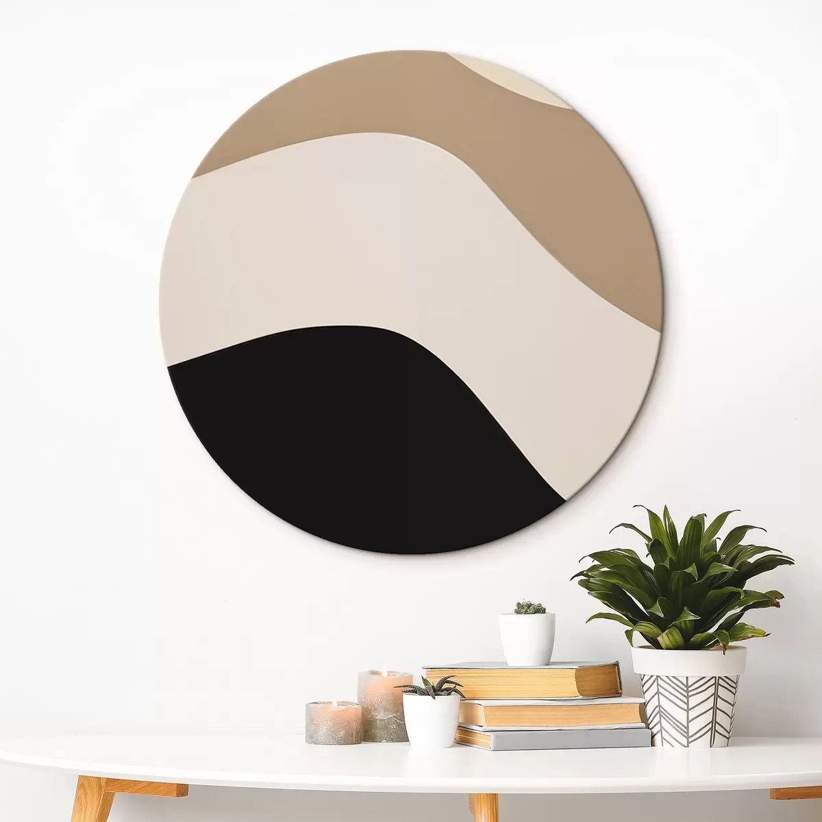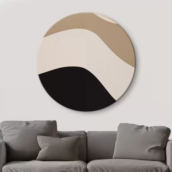 Apaļas gleznas Abstraktie viļņi bēšā un melnā krāsā r44687