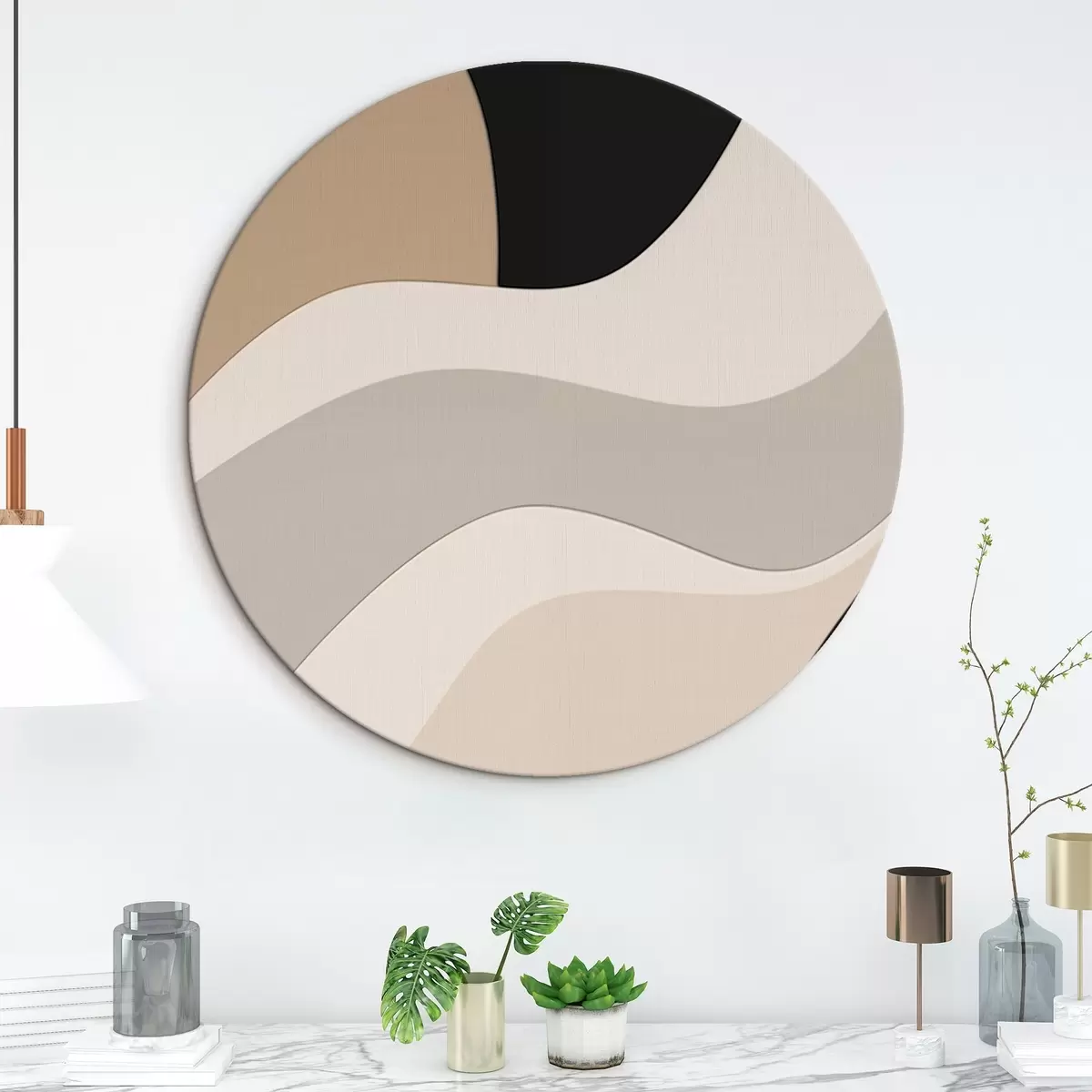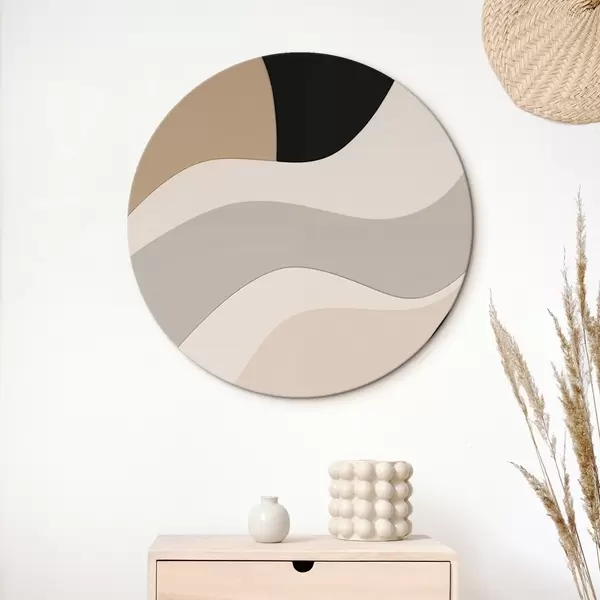 Apaļas gleznas Abstraktie viļņi bēšā un melnā krāsā r44688