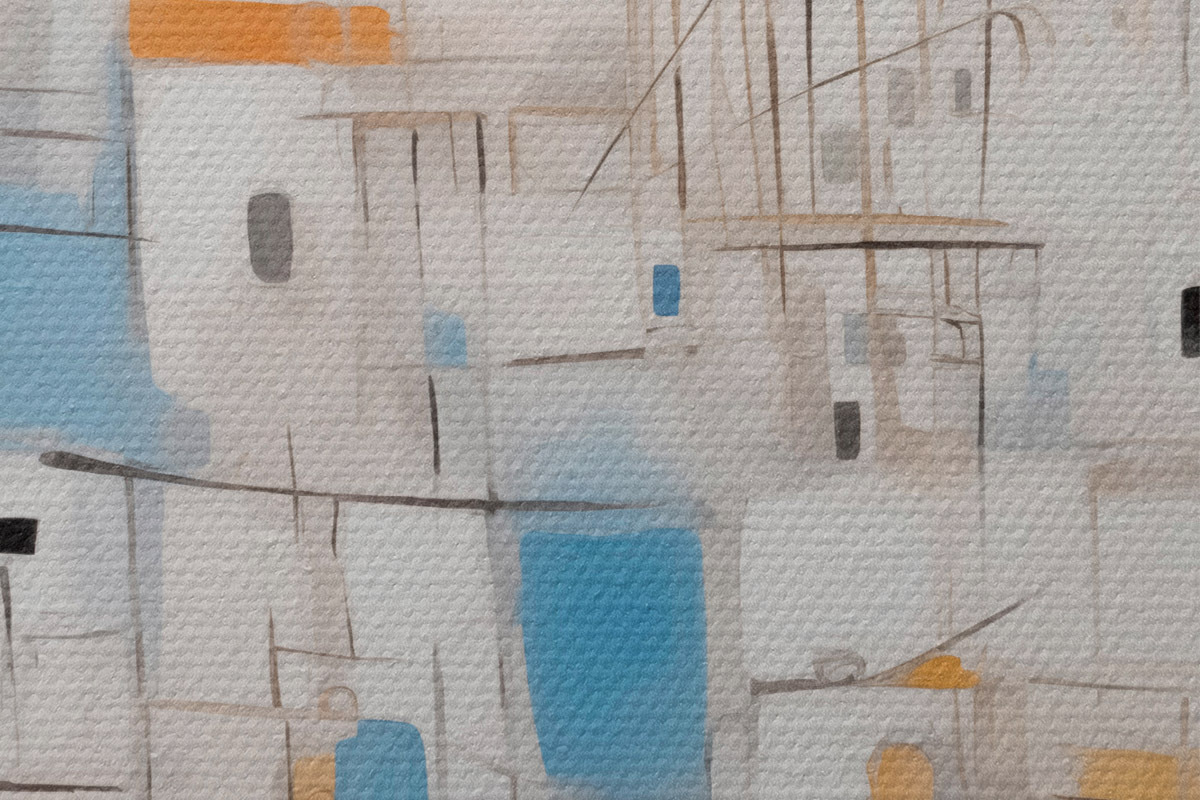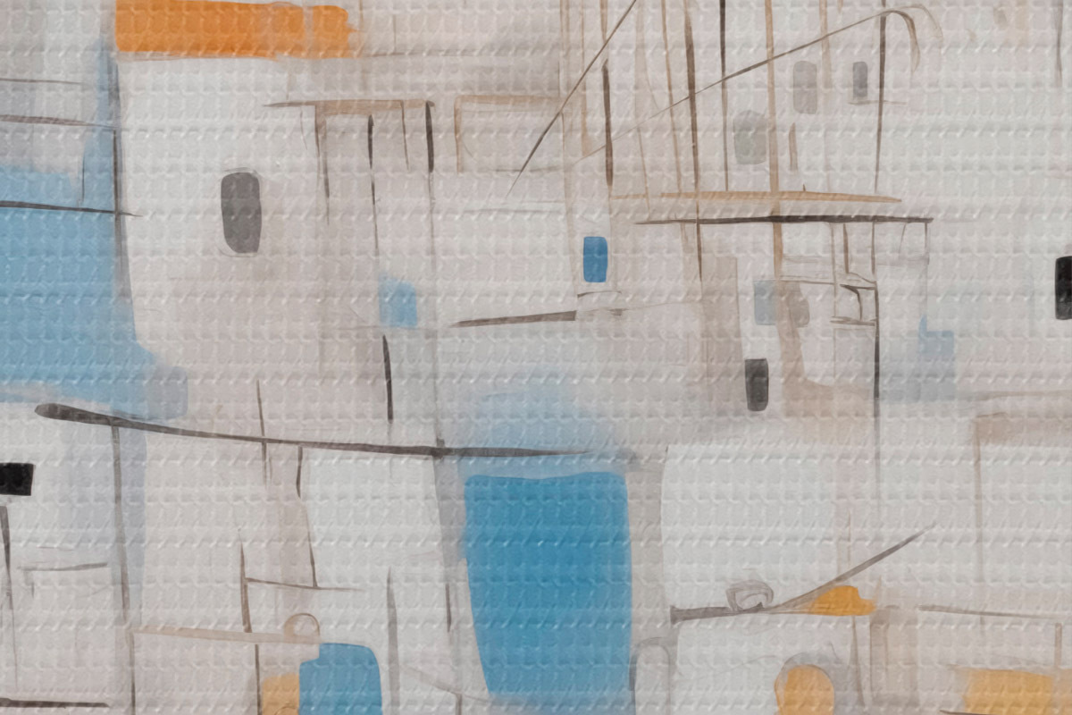 Smalkais diegu pinums uz šī audekla atgādina profesionālu mākslinieku audeklu virsmu.